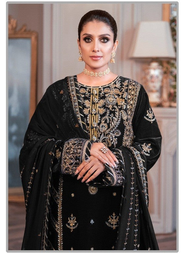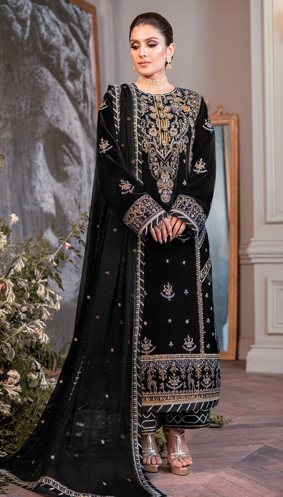 Black Color Winter Collection Heavy Embroidered Velvet Salwar Suit