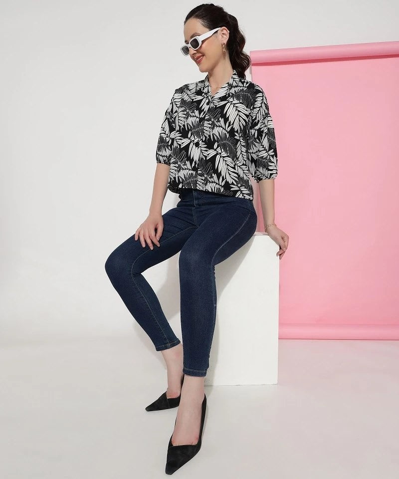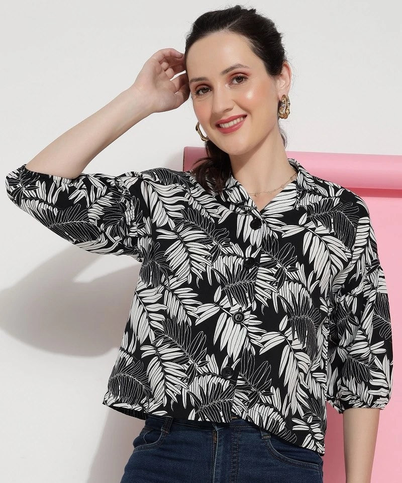 Black Colour Casual Wear Crepe Printed Shirt For Women