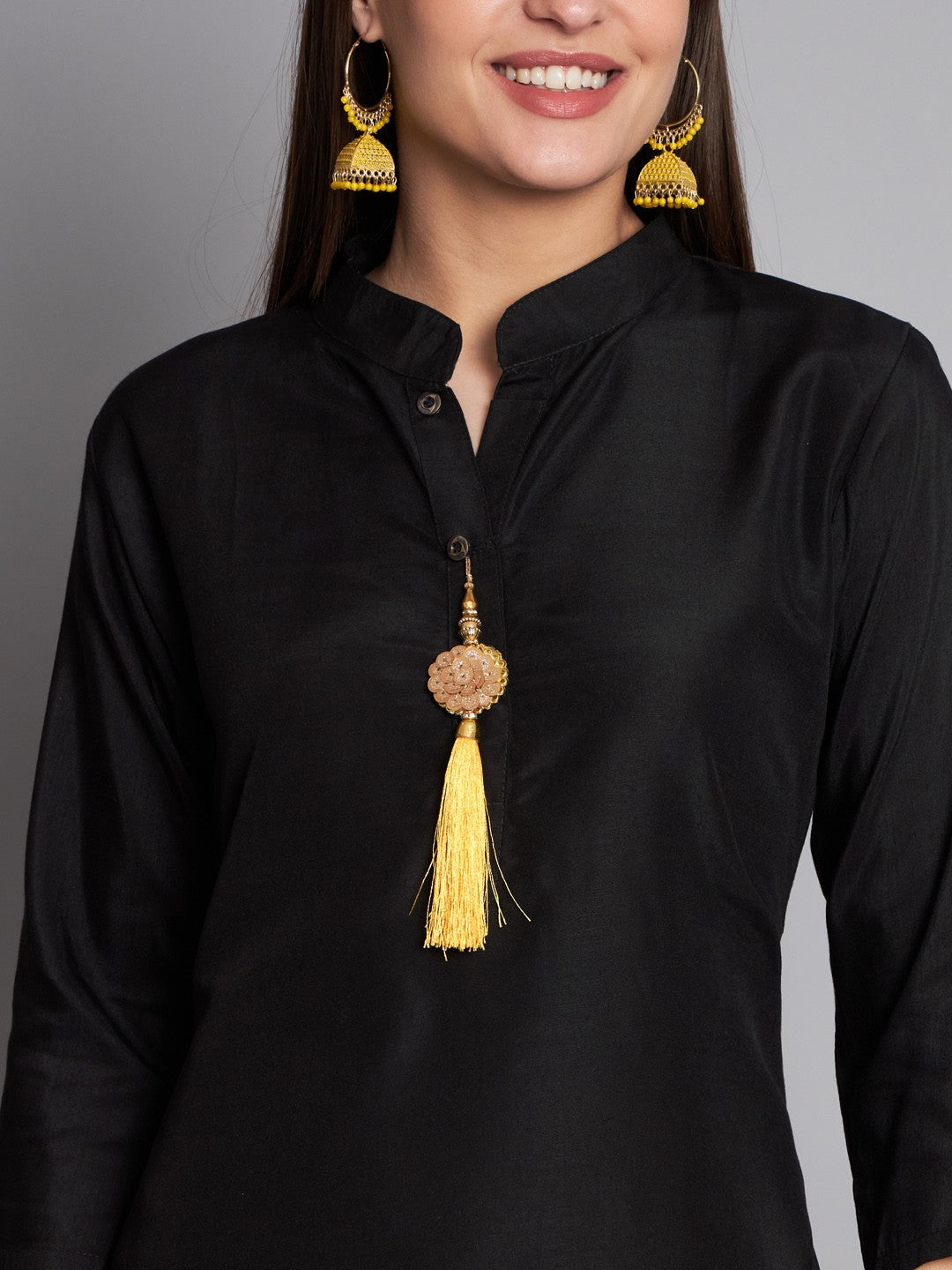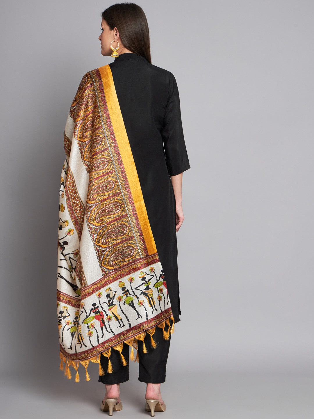Black Colour Cotton Printed Dupatta With Kurta Pant Set For Women's