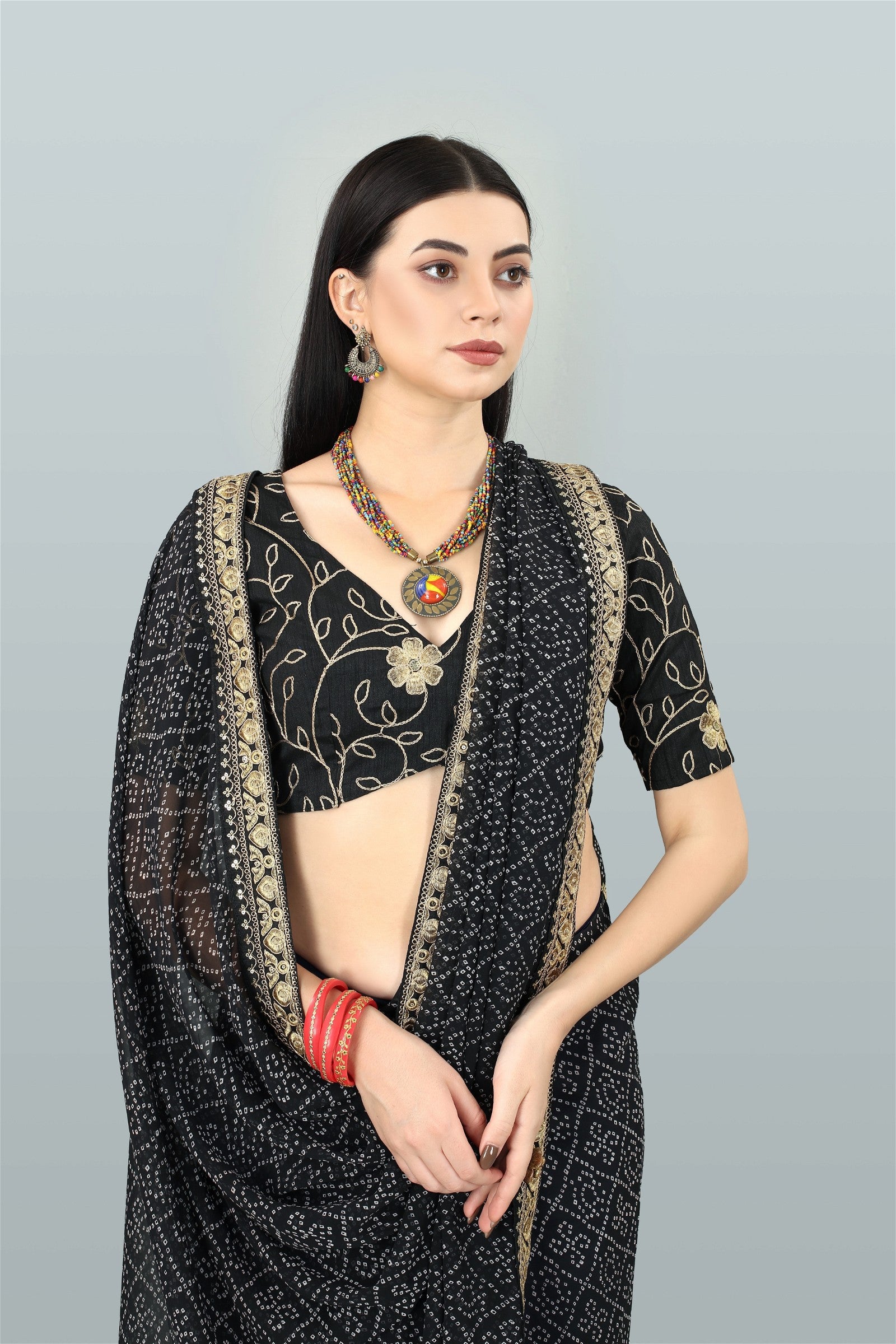 Black Colour Georgette Bandhani Printed Saree