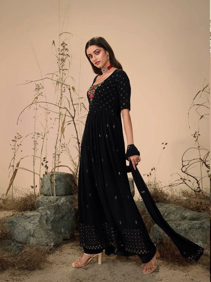 Black Colour Georgette Party Wear Salwar Kameez with Thread and Embroidered Squence work