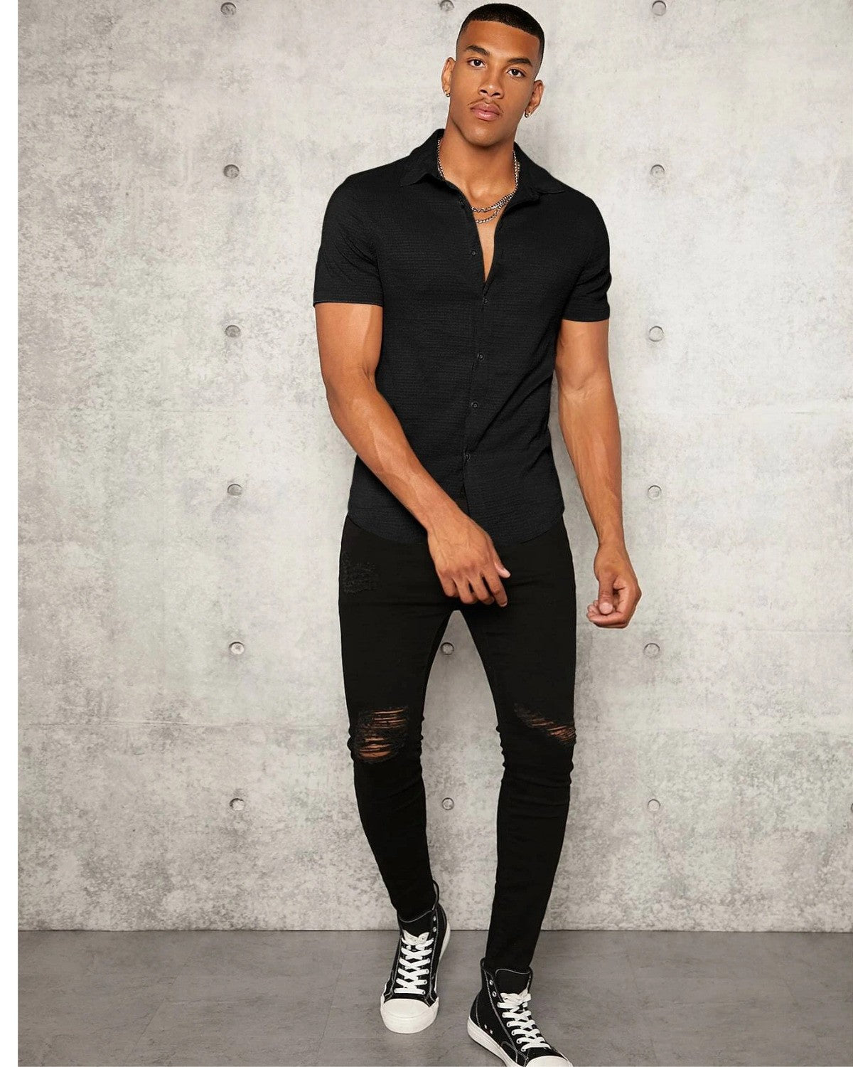 Black Colour Imported Casual Wear Short Sleeve Shirt For Men's