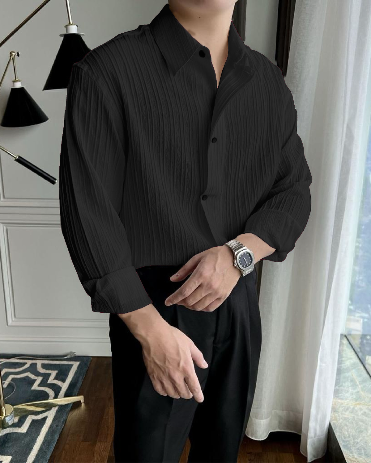 Black Colour Men's Casual Wear Lining Structured Shirt