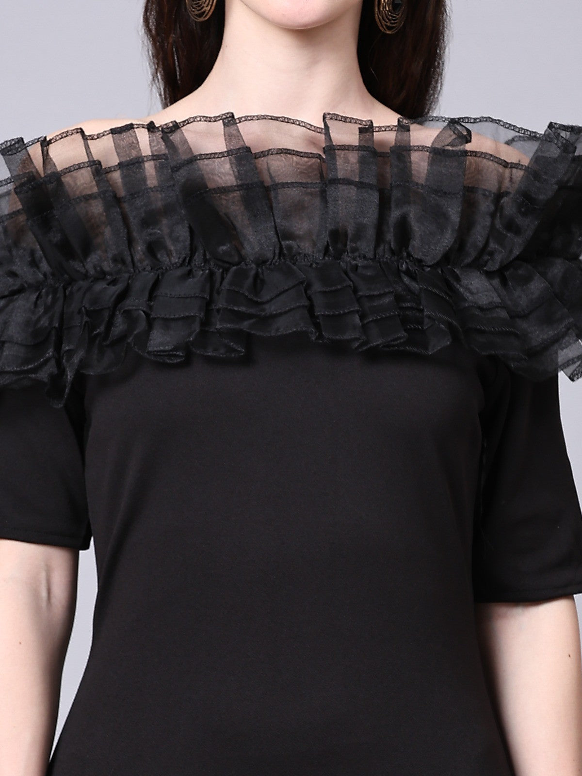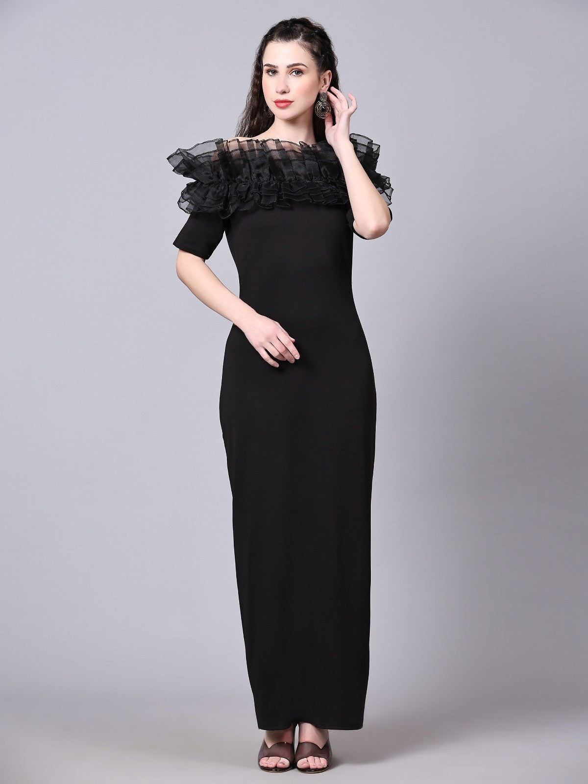 Black Designer Cotton Lycra Off Shoulder Women's Regular Fit Dress