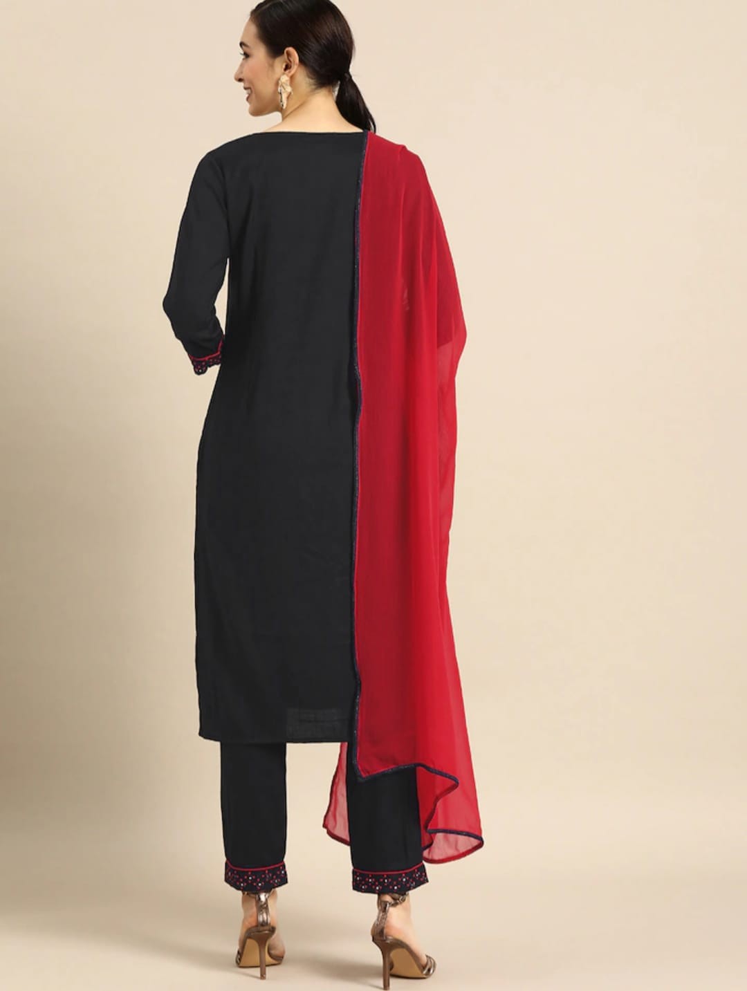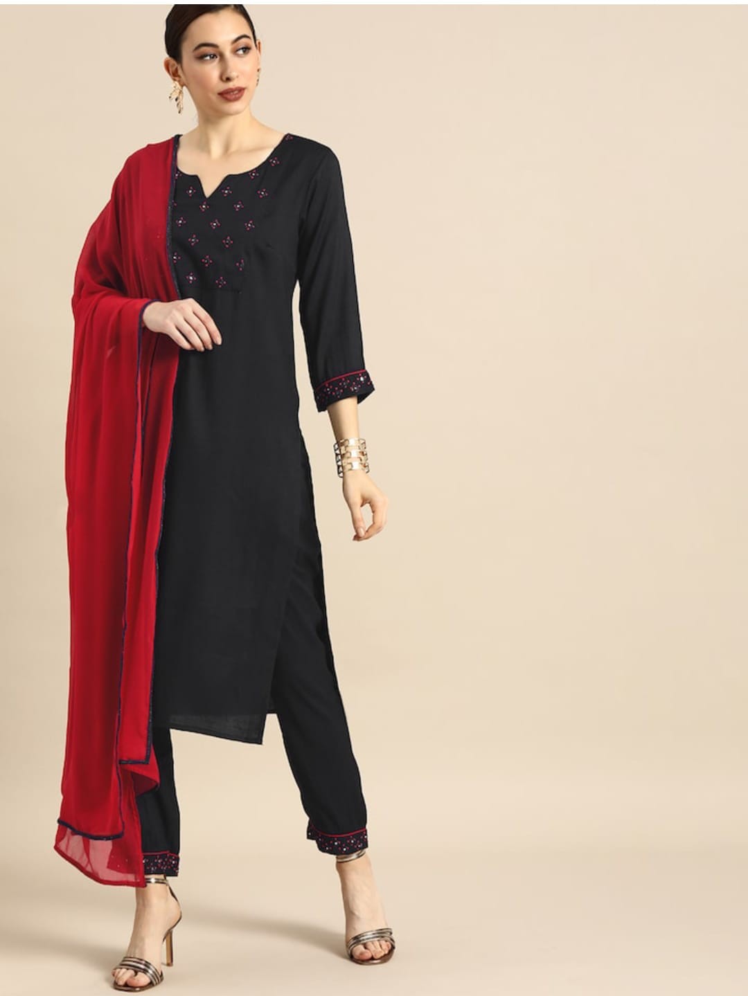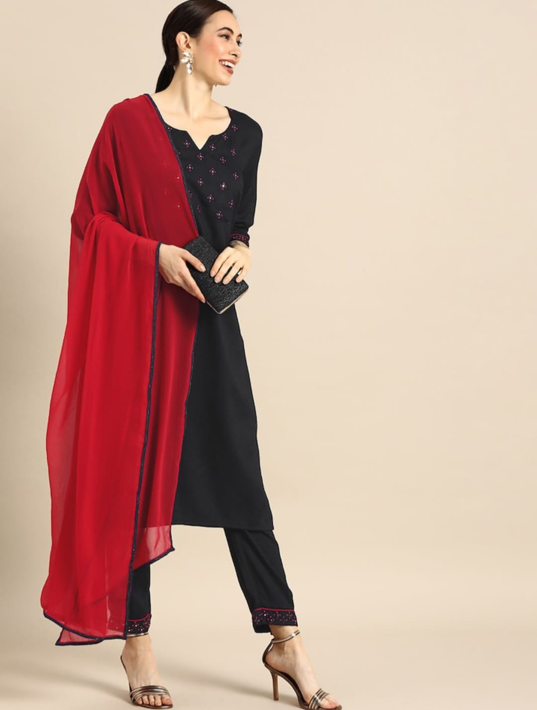 Black Party Wear Embroidery Worked Kurta With Pant And Duppata Set