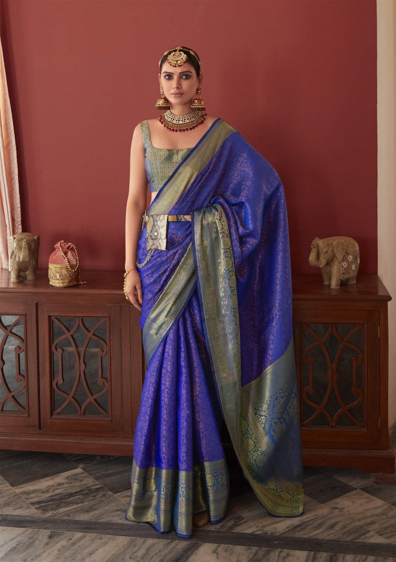 Blue Colour Soft Kanjivaram Silk With Copper Zari Weaving