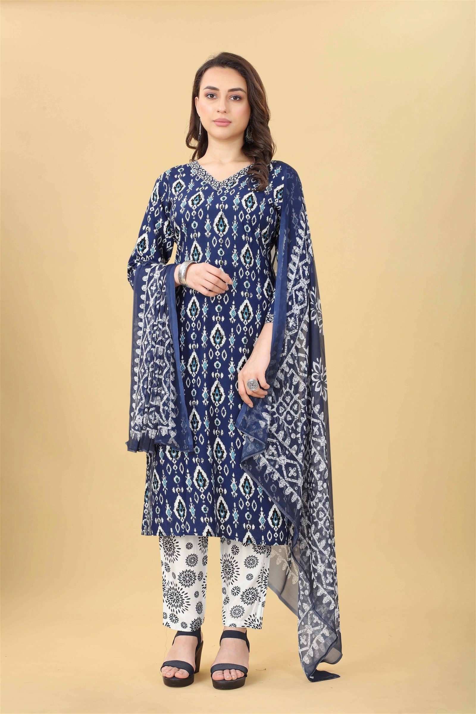 Blue Printed Fancy Kurti With Bottom Dupatta Set