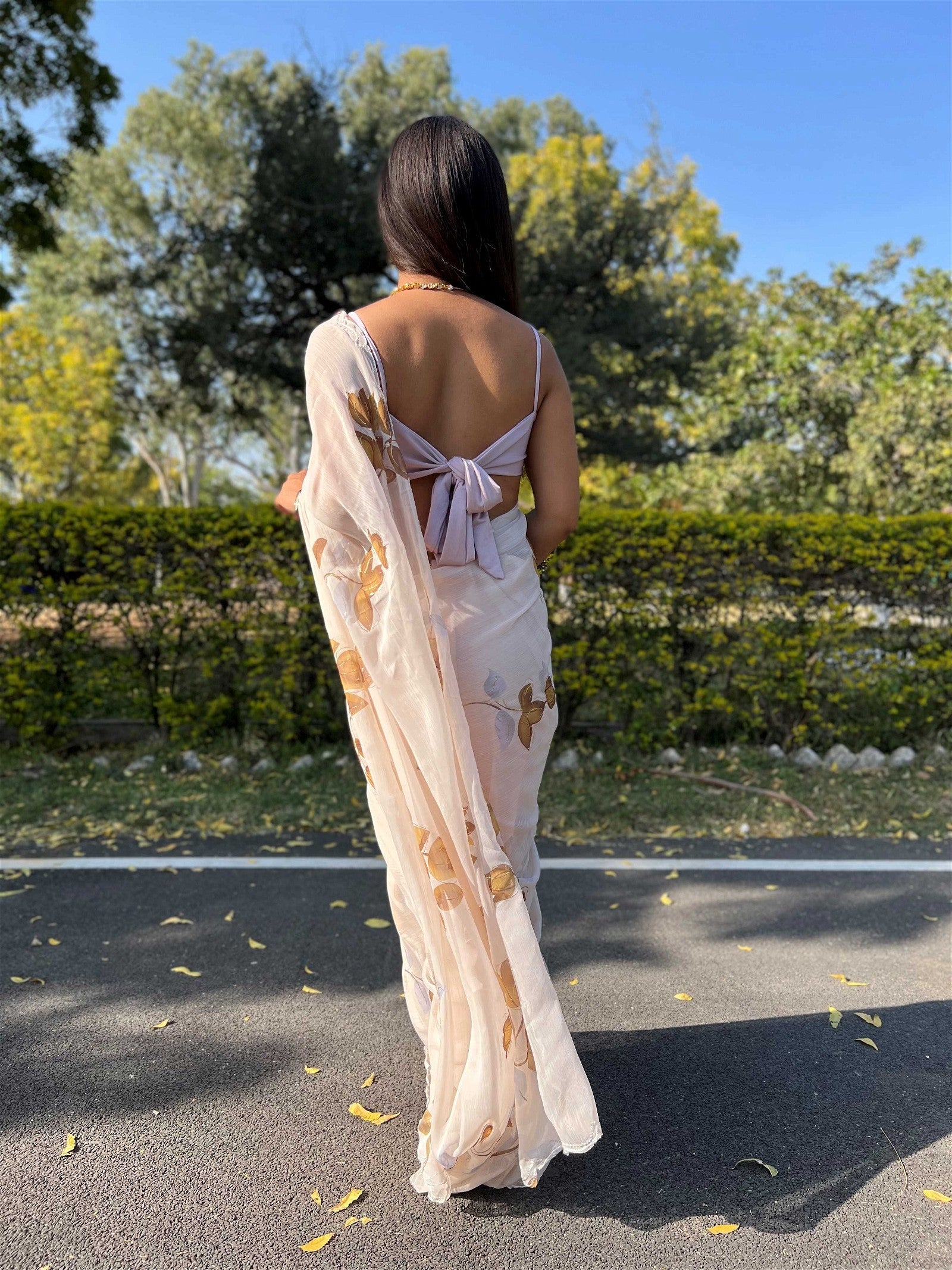 Cream Colour Chiffon Digital With Foil Print Saree For Women's