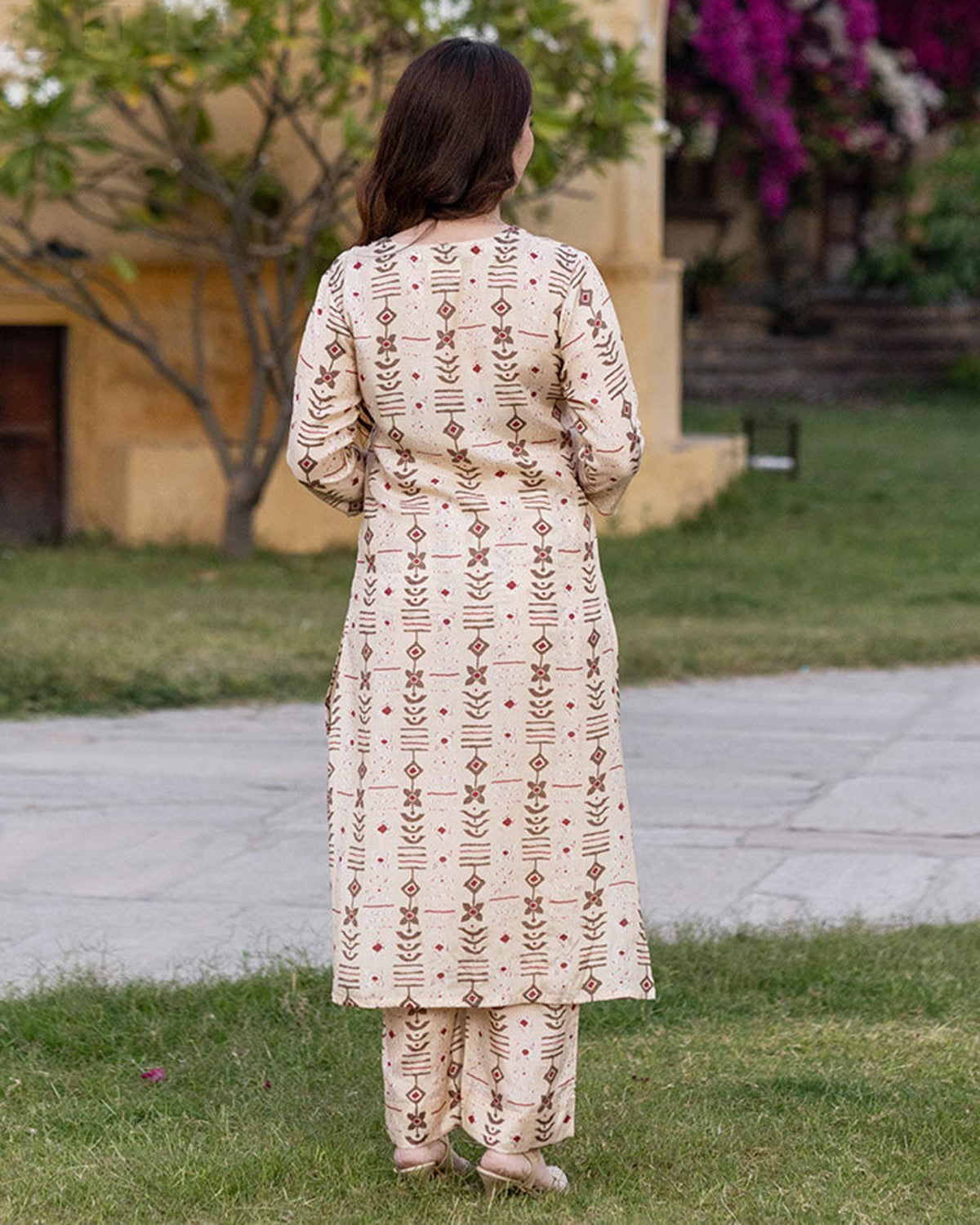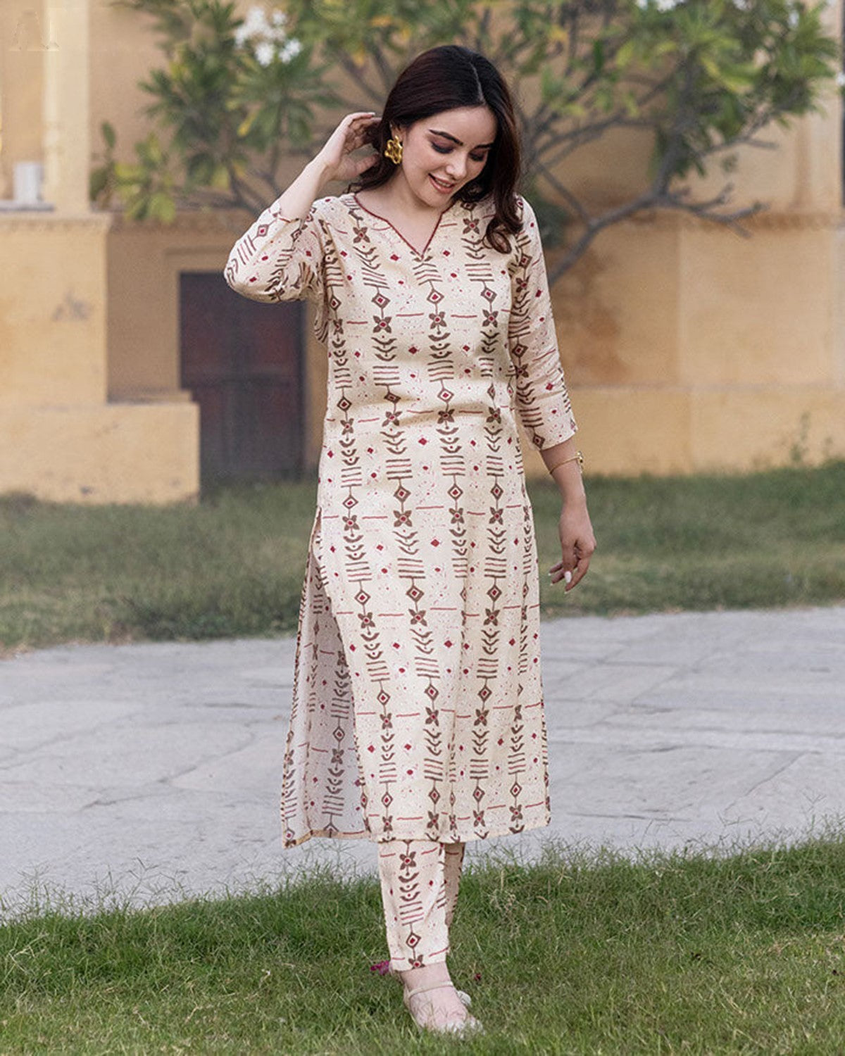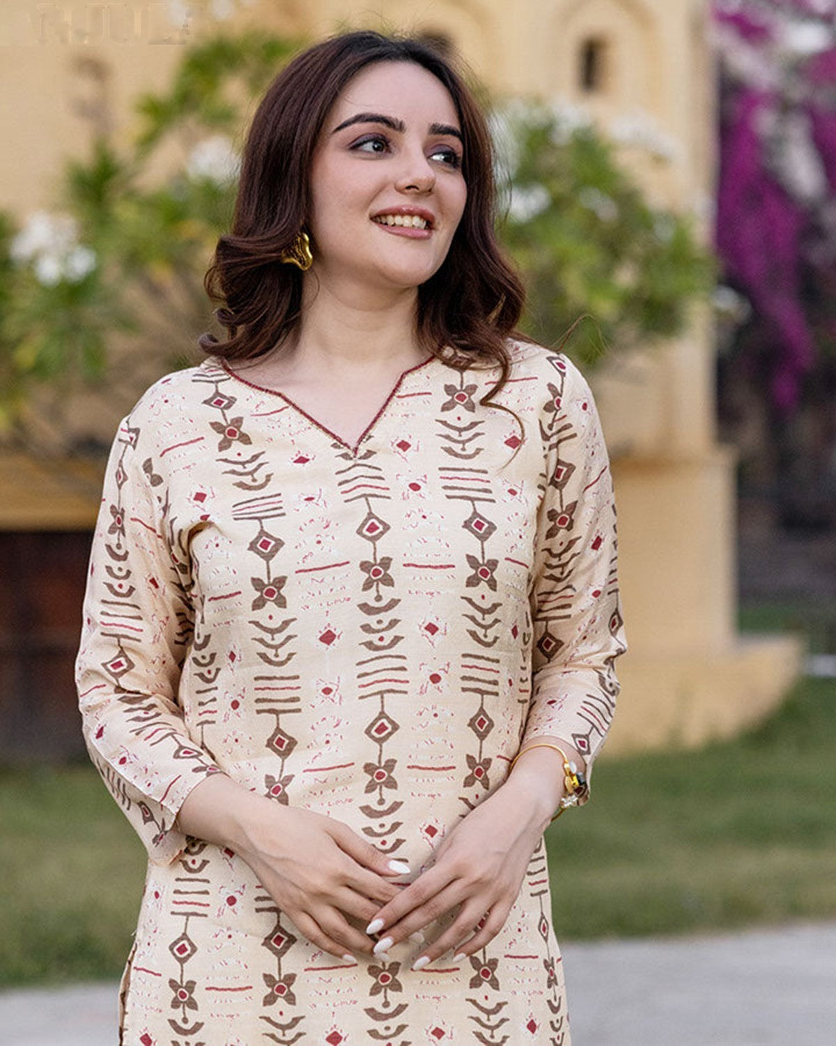 Cream Colour Pure Muslin Readymade Kurti With Bottom Set For Women's