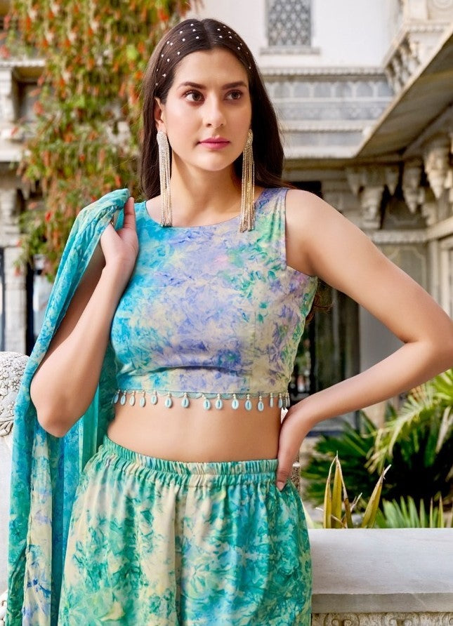 Dark Aqua Tie & Dye Indo Western Suit For Women