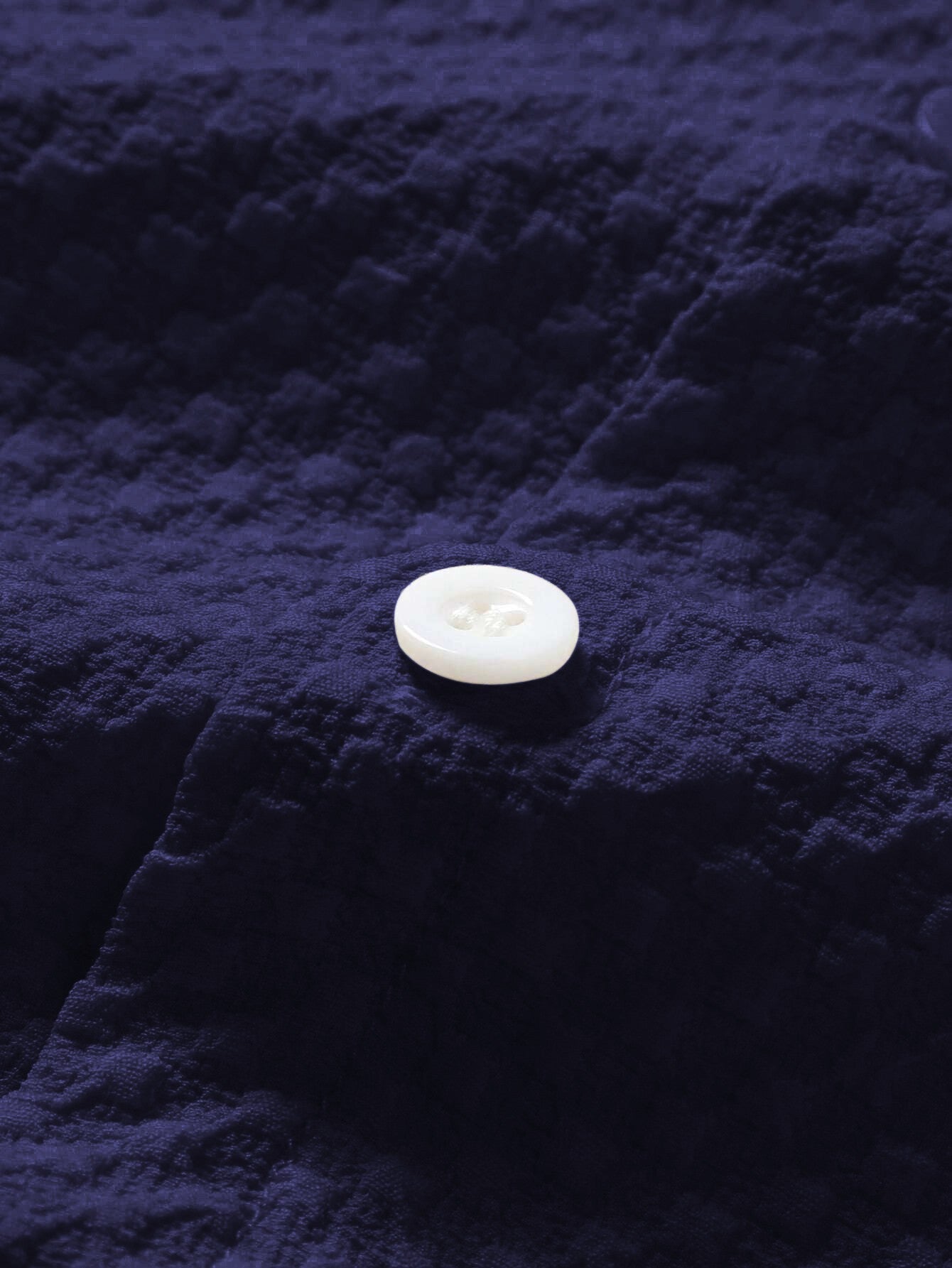 Dark Blue Men Regular Fit Solid Casual Half Sleeves Shirt