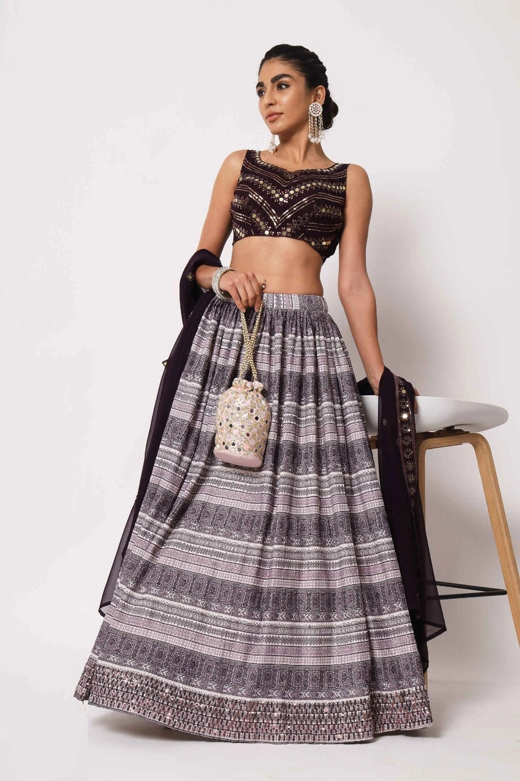 Dark Purple Floral Printed Art Silk Lehenga Choli
