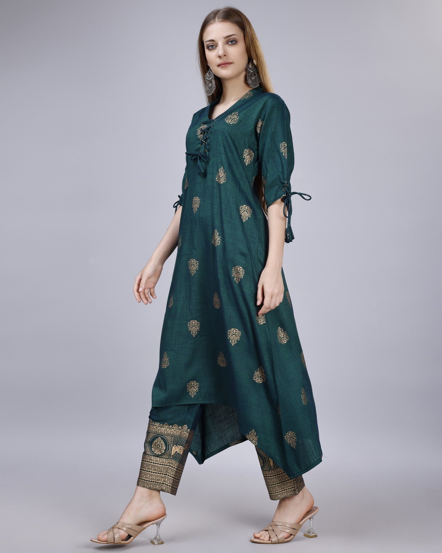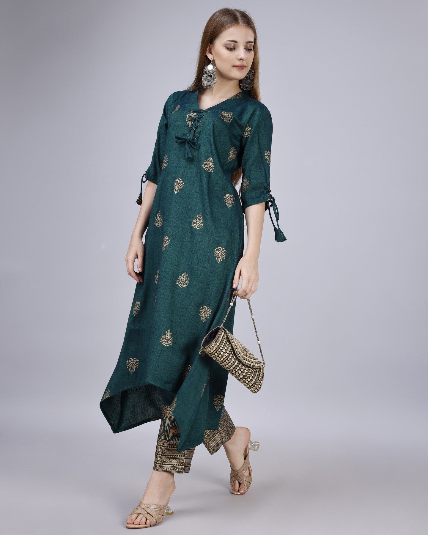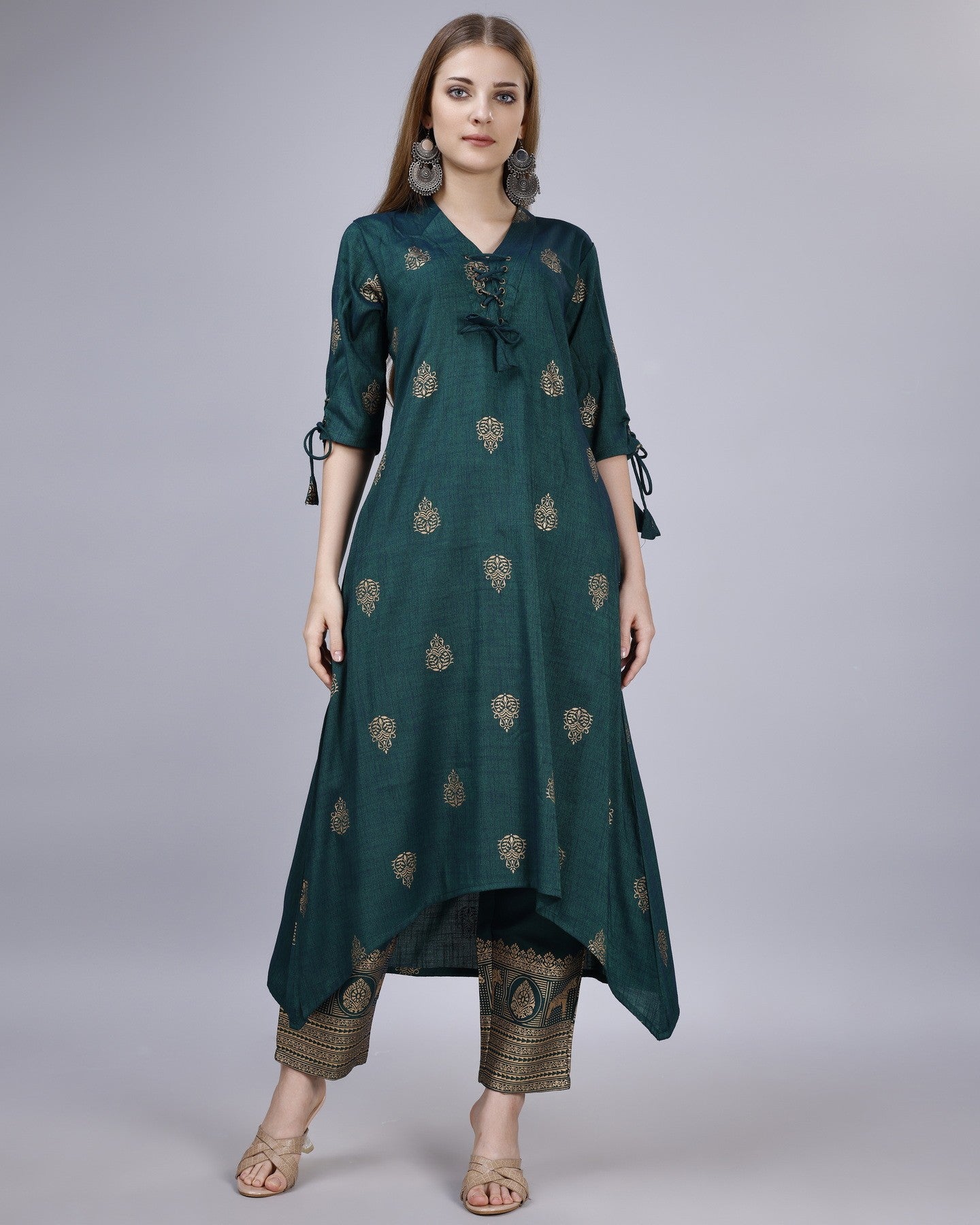 Ethnic Motifs Regular Chanderi Cotton Kurta with Churidar