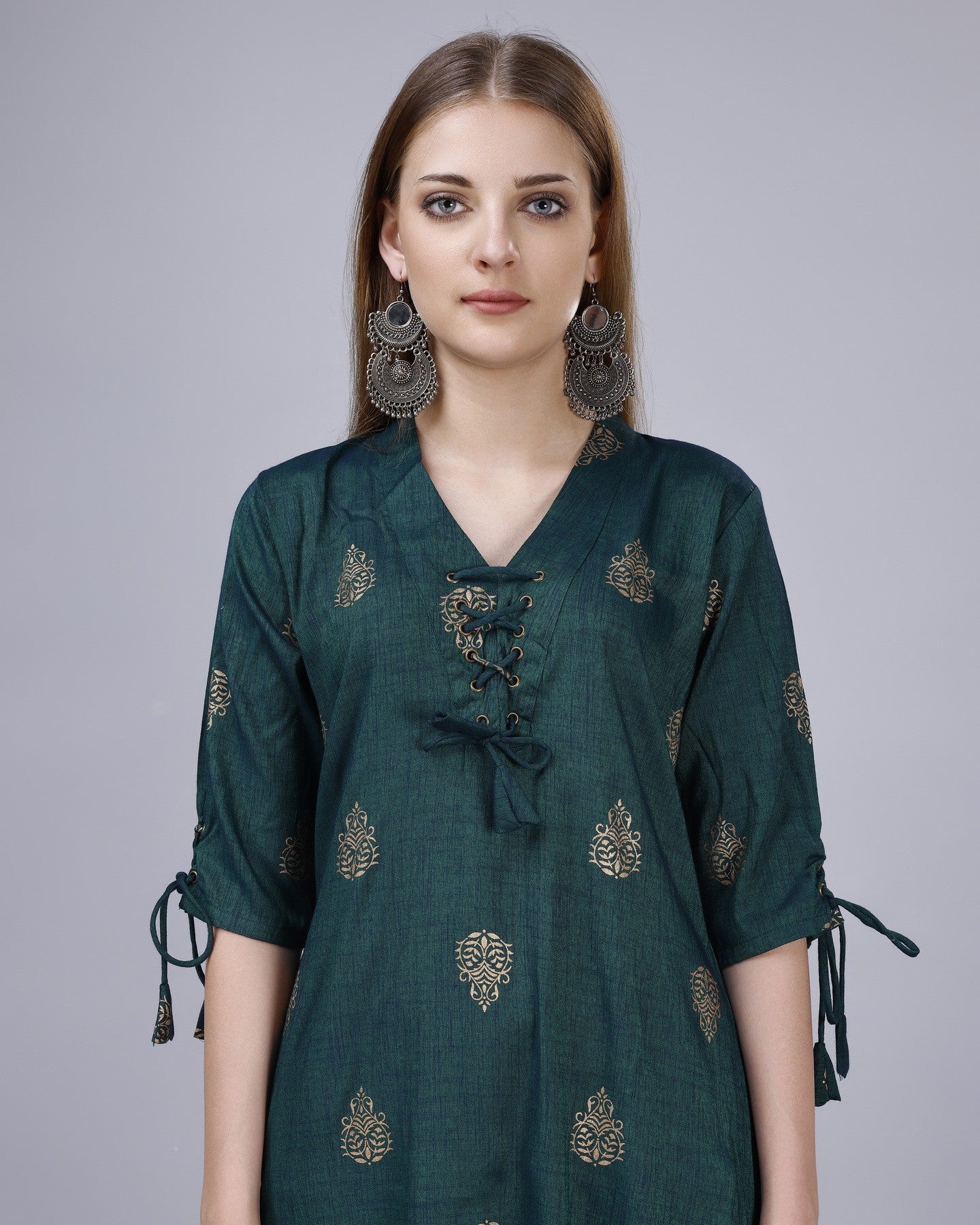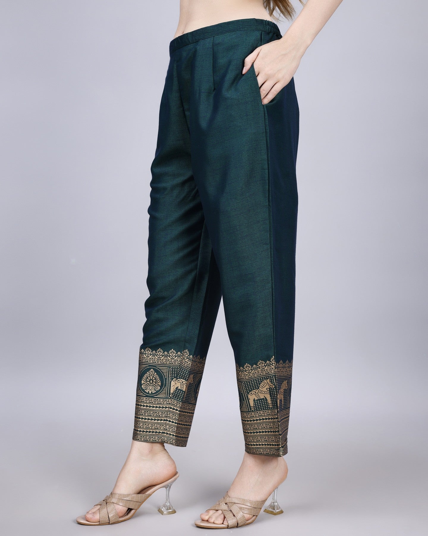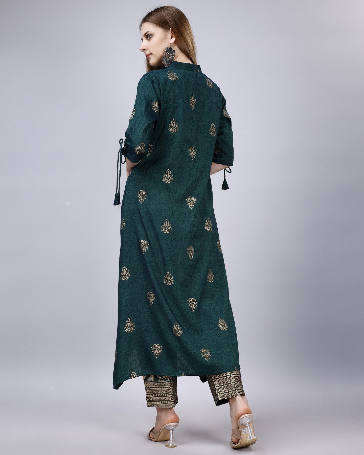 Ethnic Motifs Regular Chanderi Cotton Kurta with Churidar