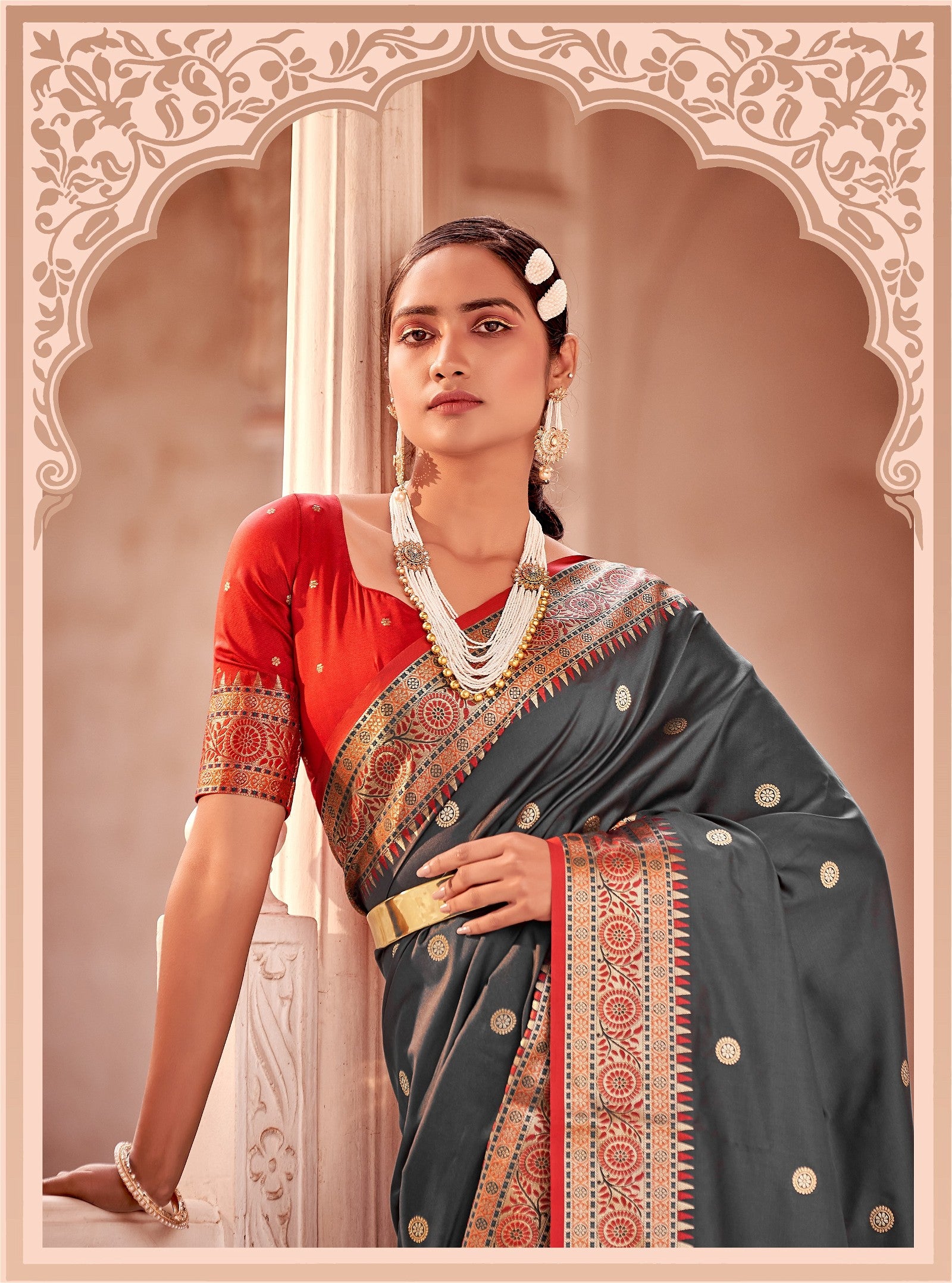 Gray Colour Banarasi Soft Silk Saree For Women's