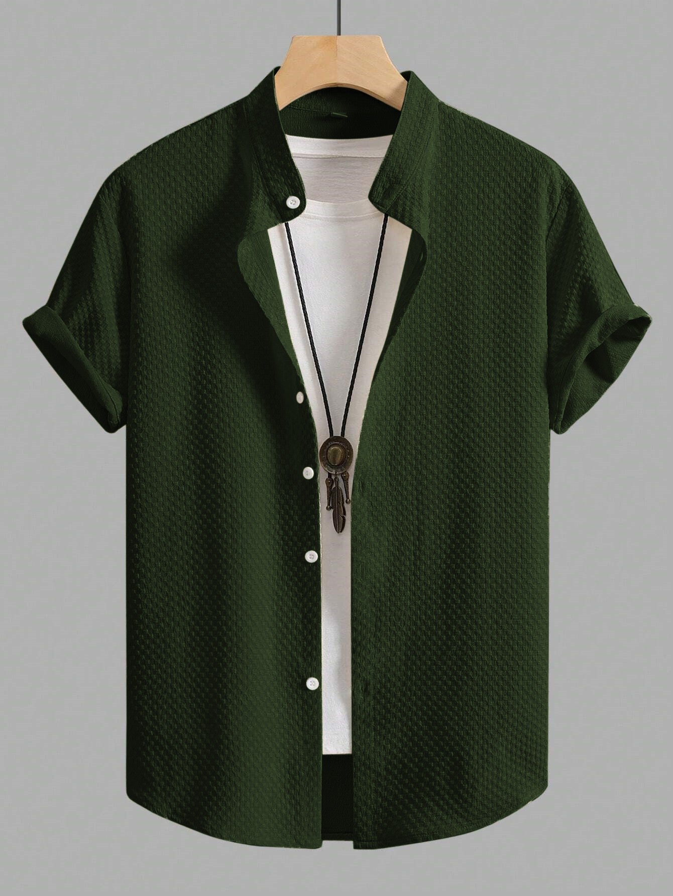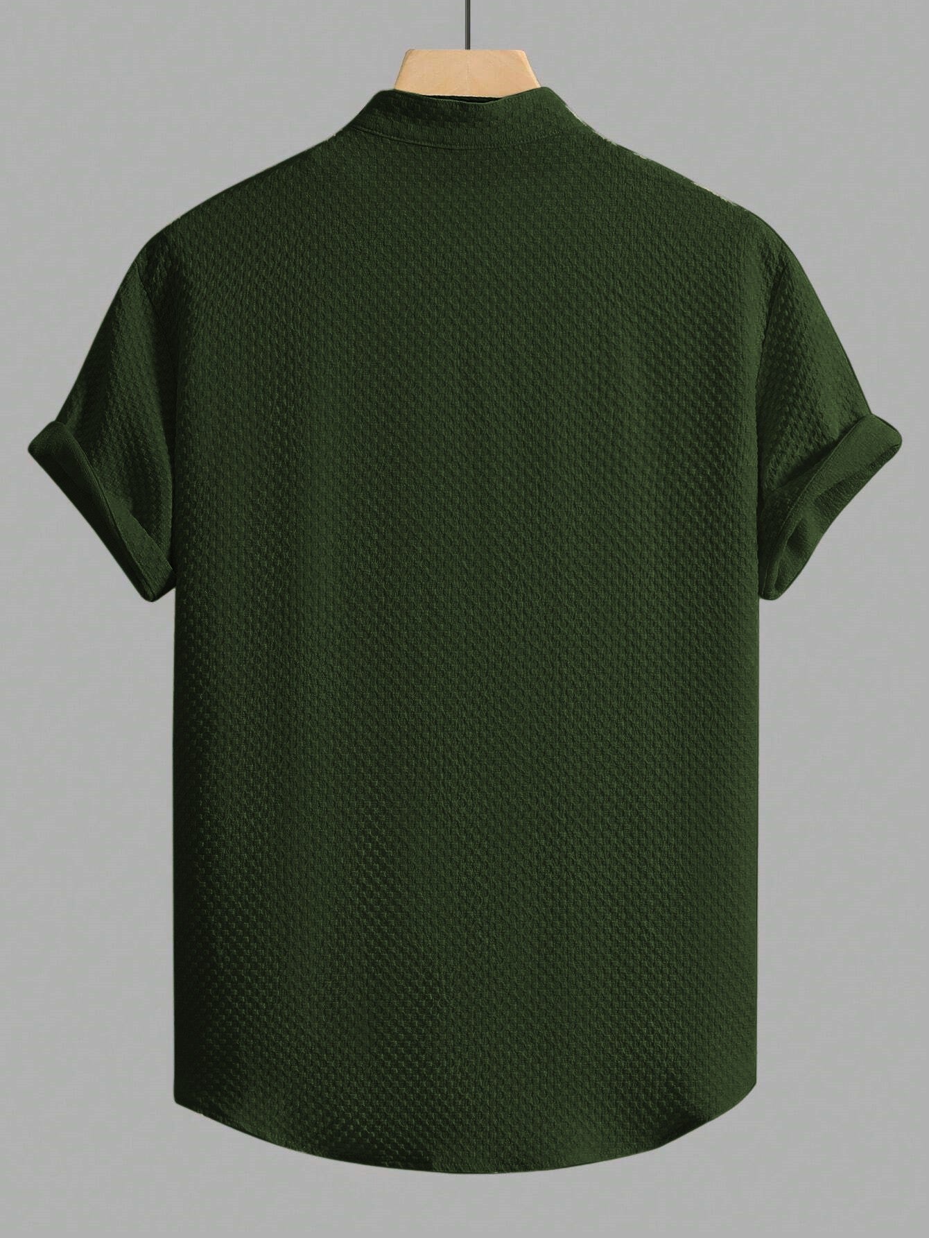 Green Men Regular Fit Solid Casual Half Sleeves Shirt
