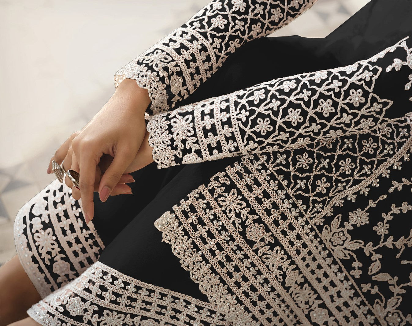 SLEEVE :- Heavy Butterfly Net with Embroidery & Cording Work