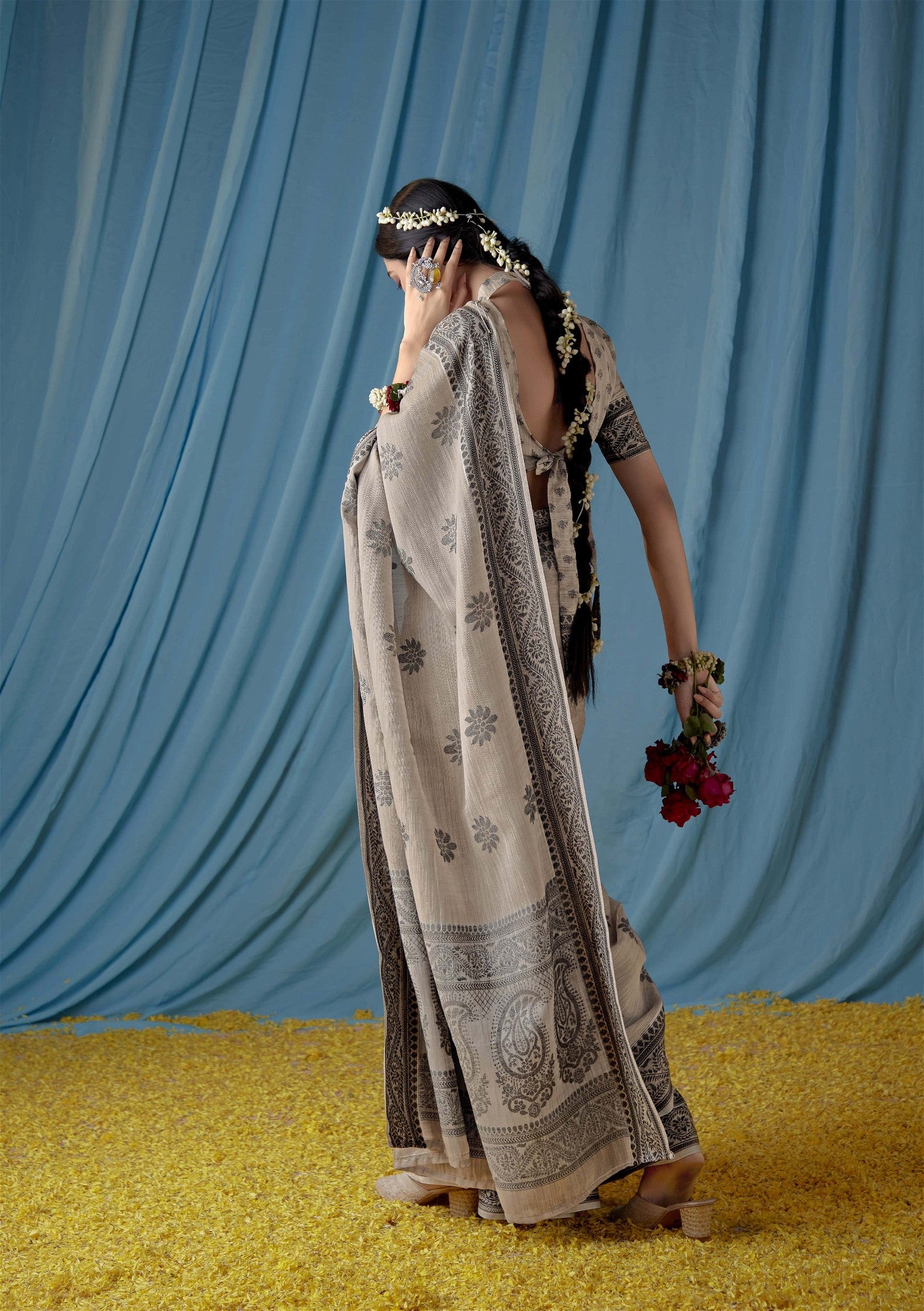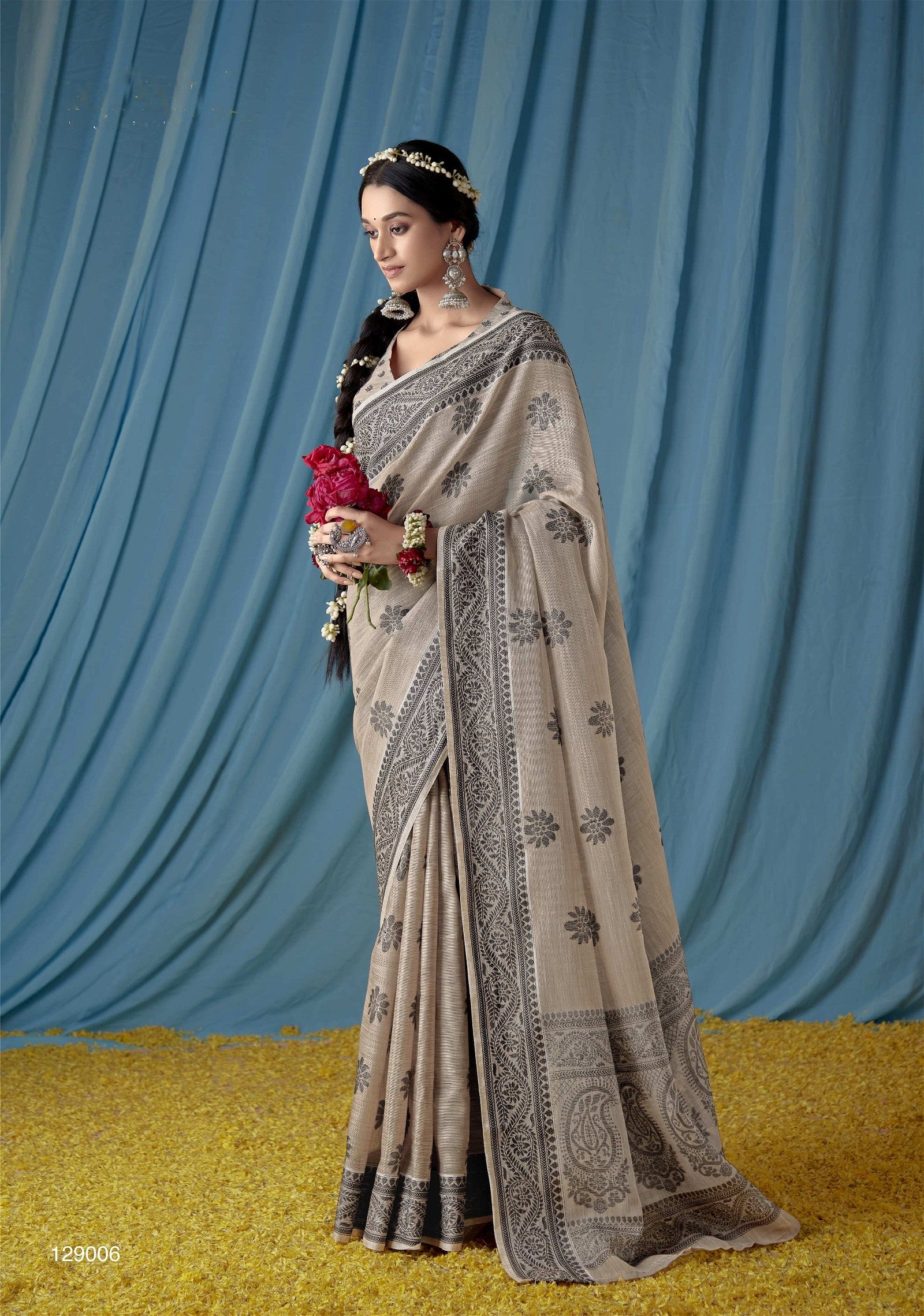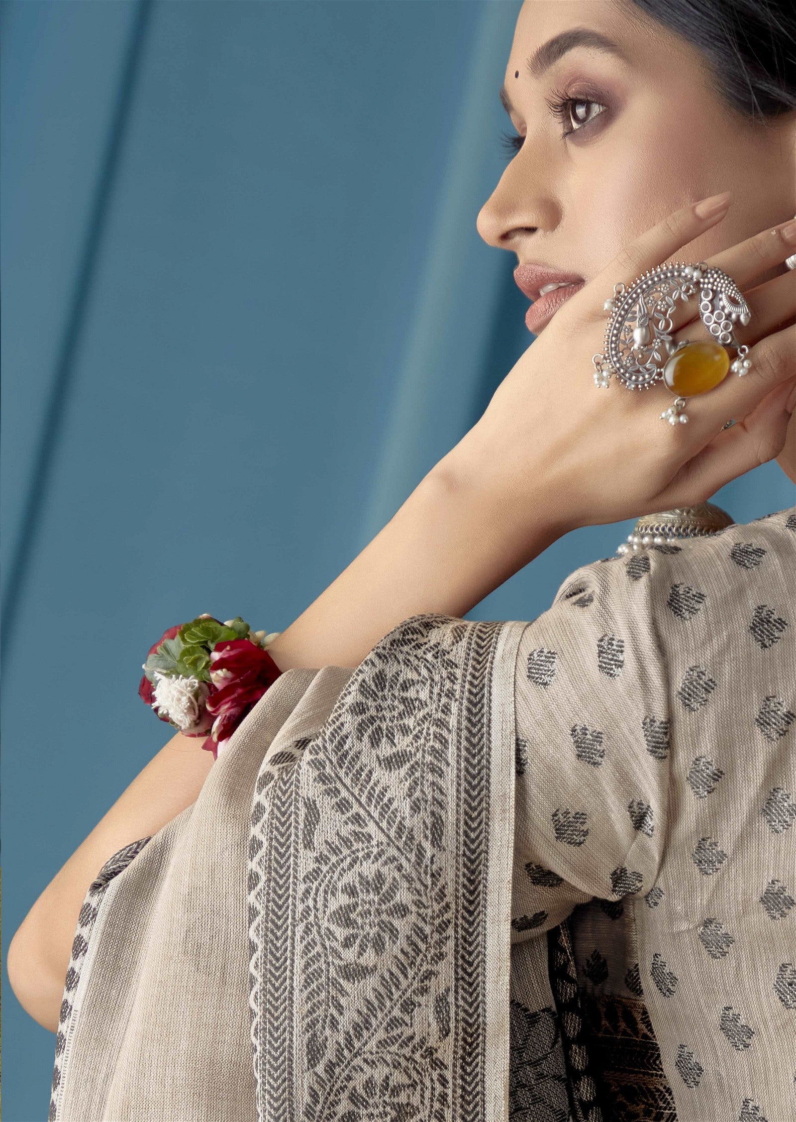 Light Brown Colour Beautiful Traditional Wear Lucknowi Linen Saree