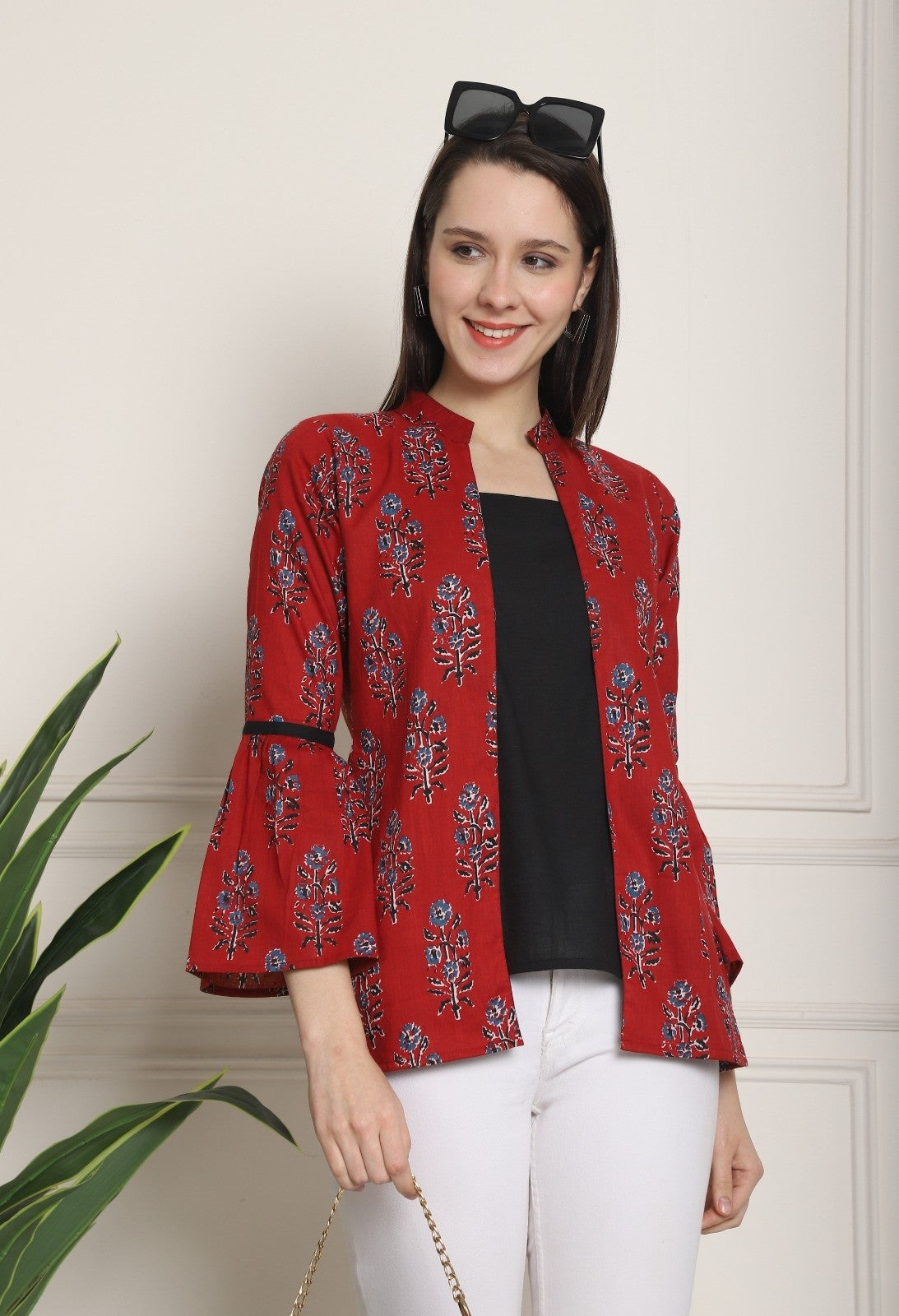 Maroon & Black Pure cotton Jaipuri Printed Short Top