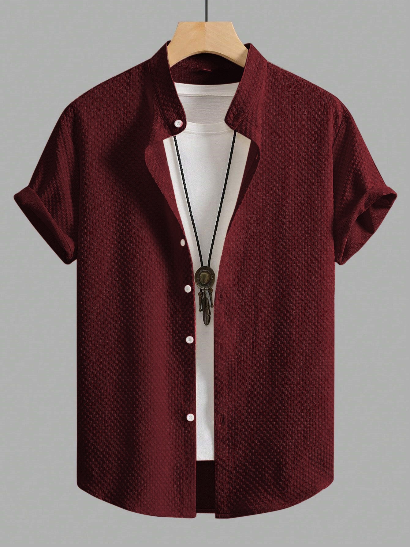 Maroon Men Regular Fit Solid Casual Half Sleeves Shirt