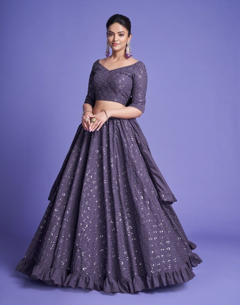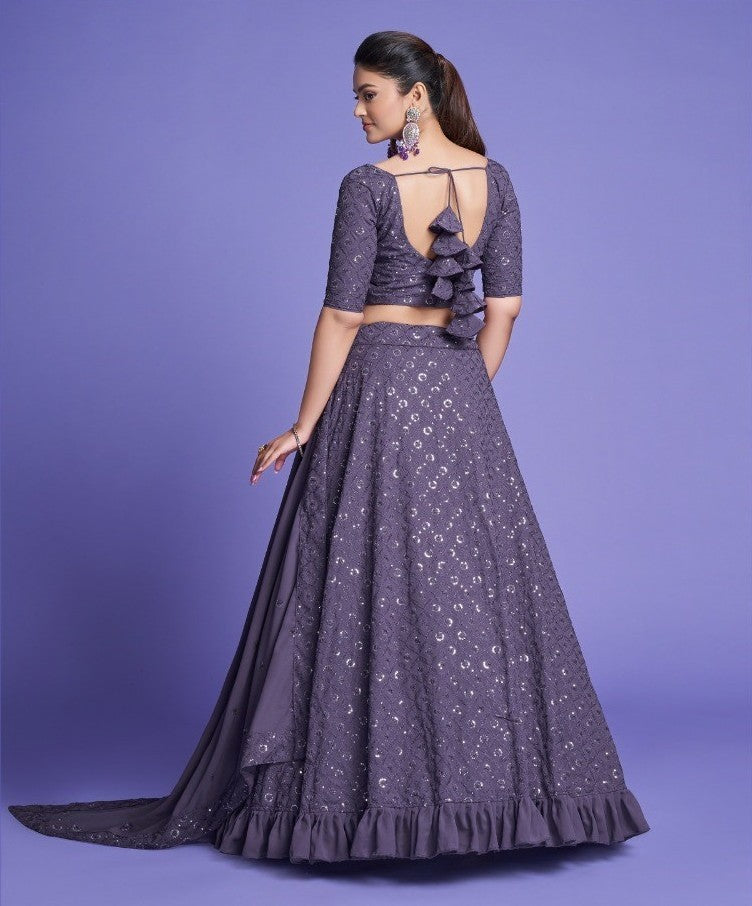 Mauve Purple Diamond Georgette Thread Worked Lehenga