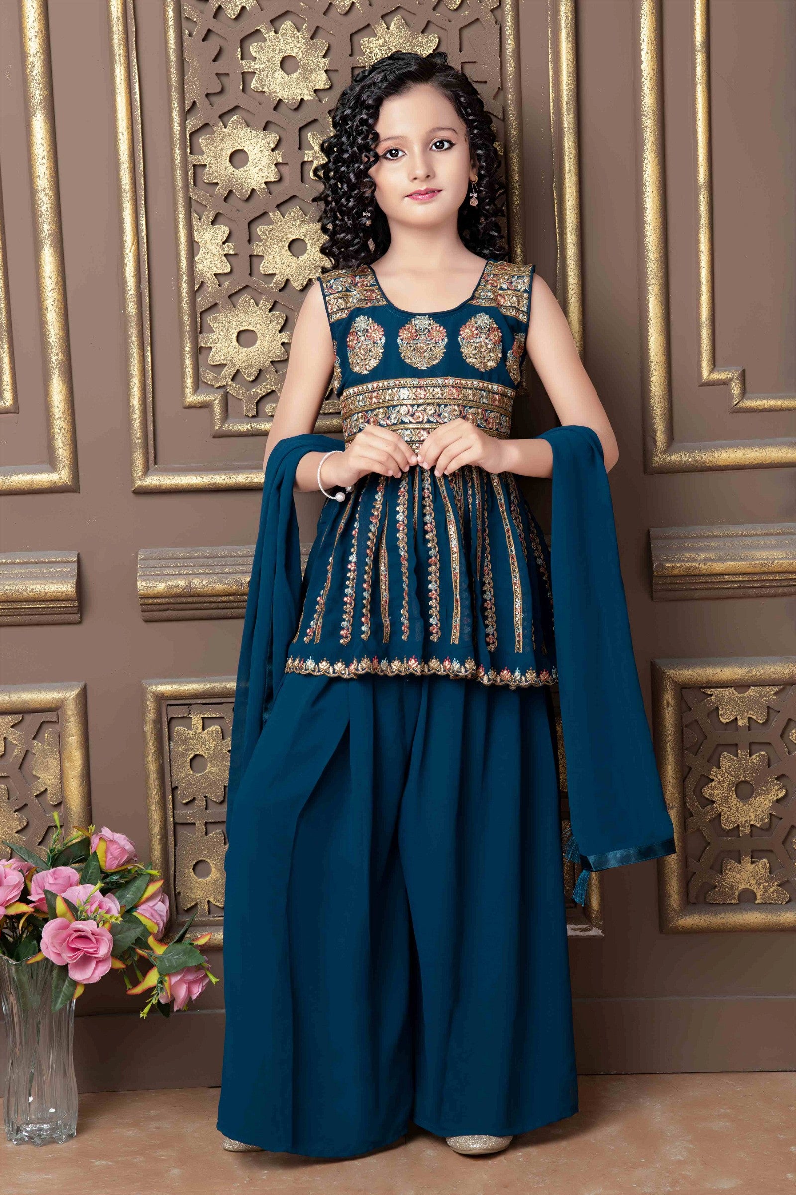 Mint Green Faux Georgette Kids Sarara Kameez 1004A