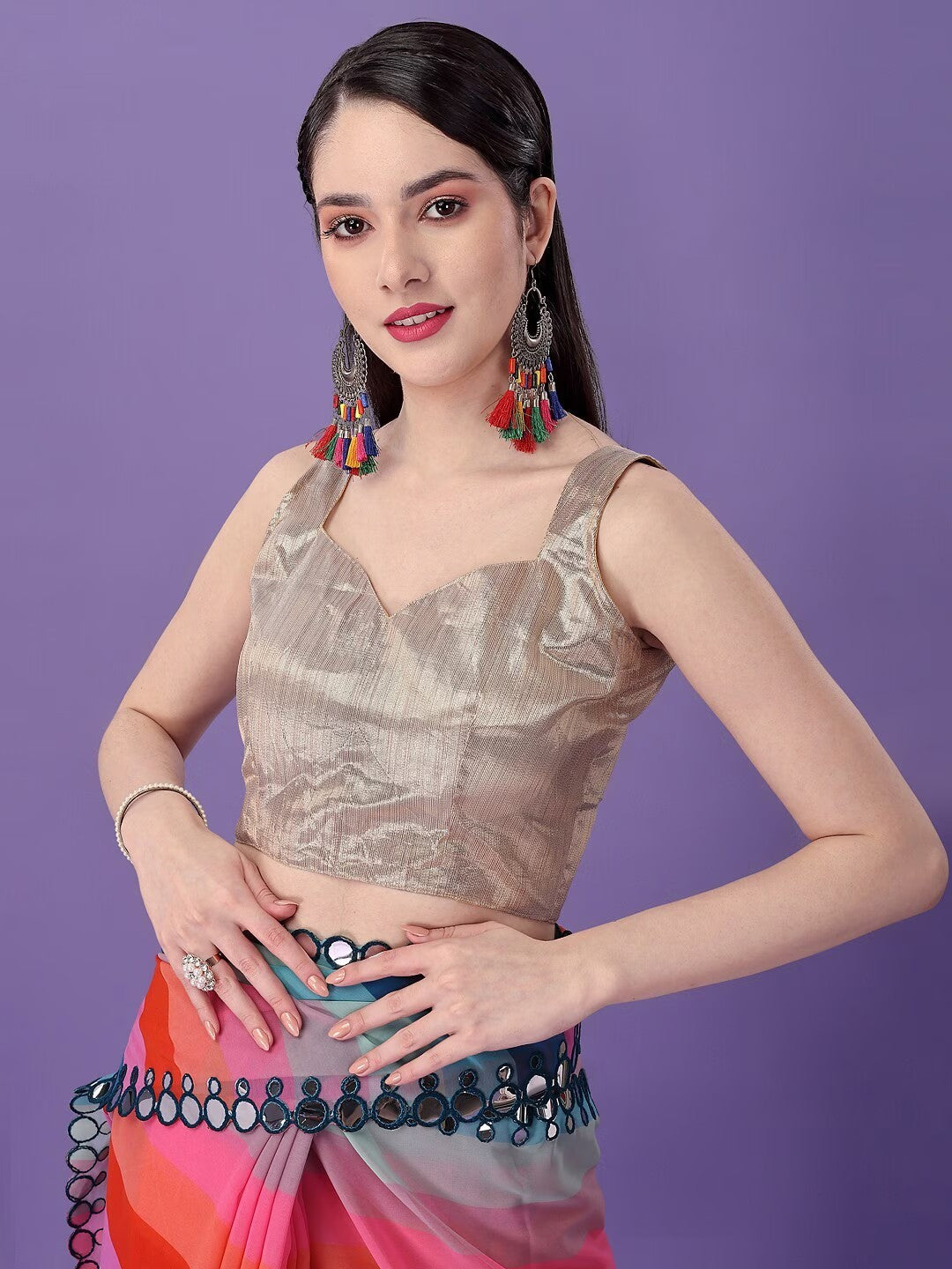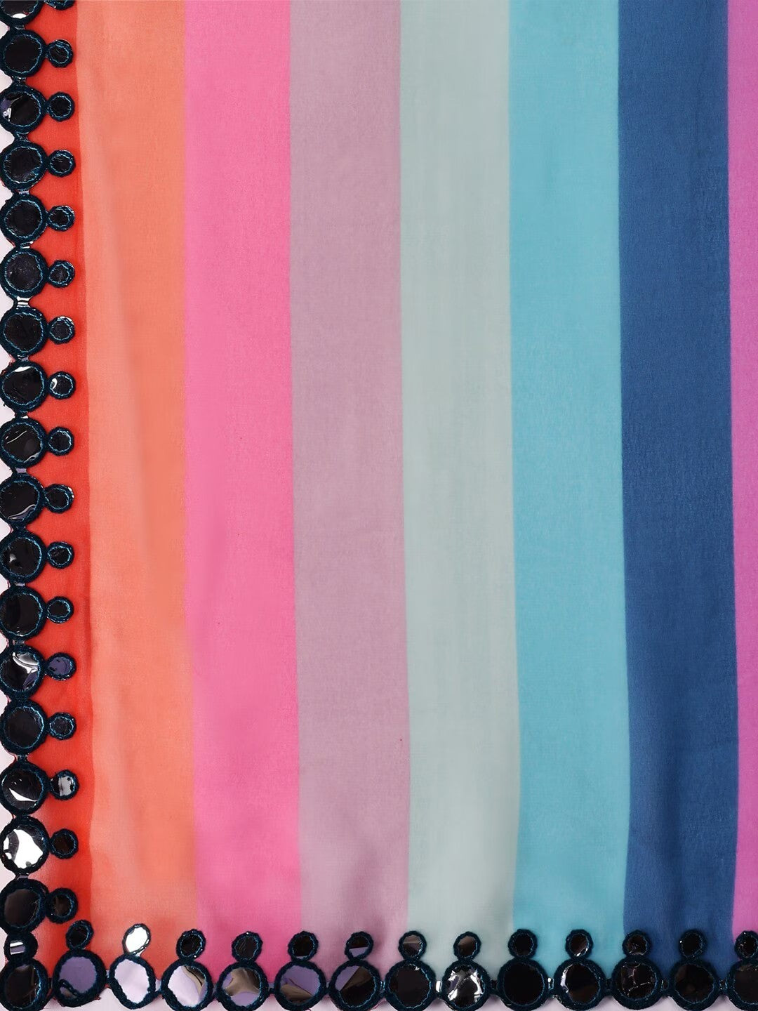 Multicolor Georgette with Leriya Print And Mirror Lace Work Saree