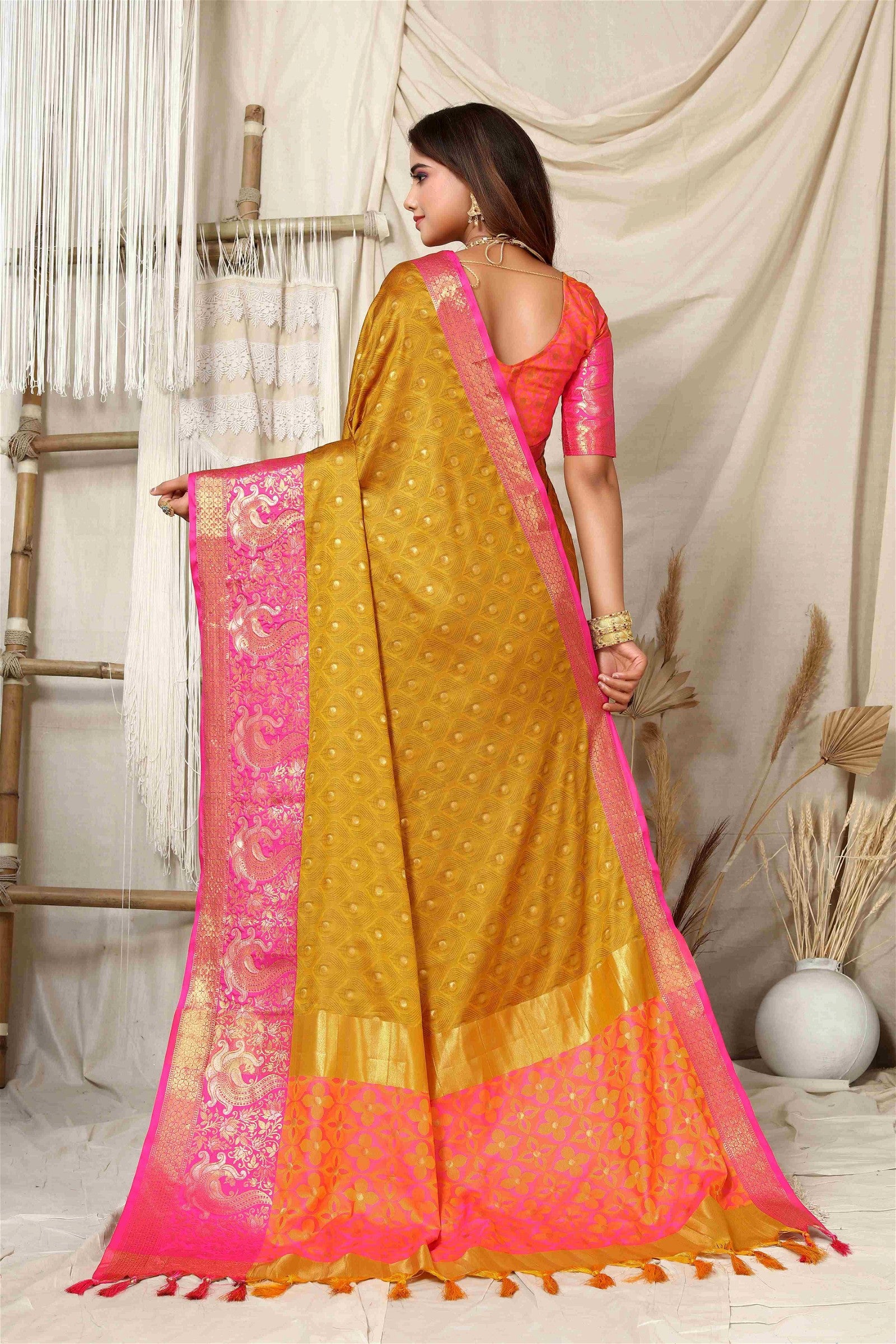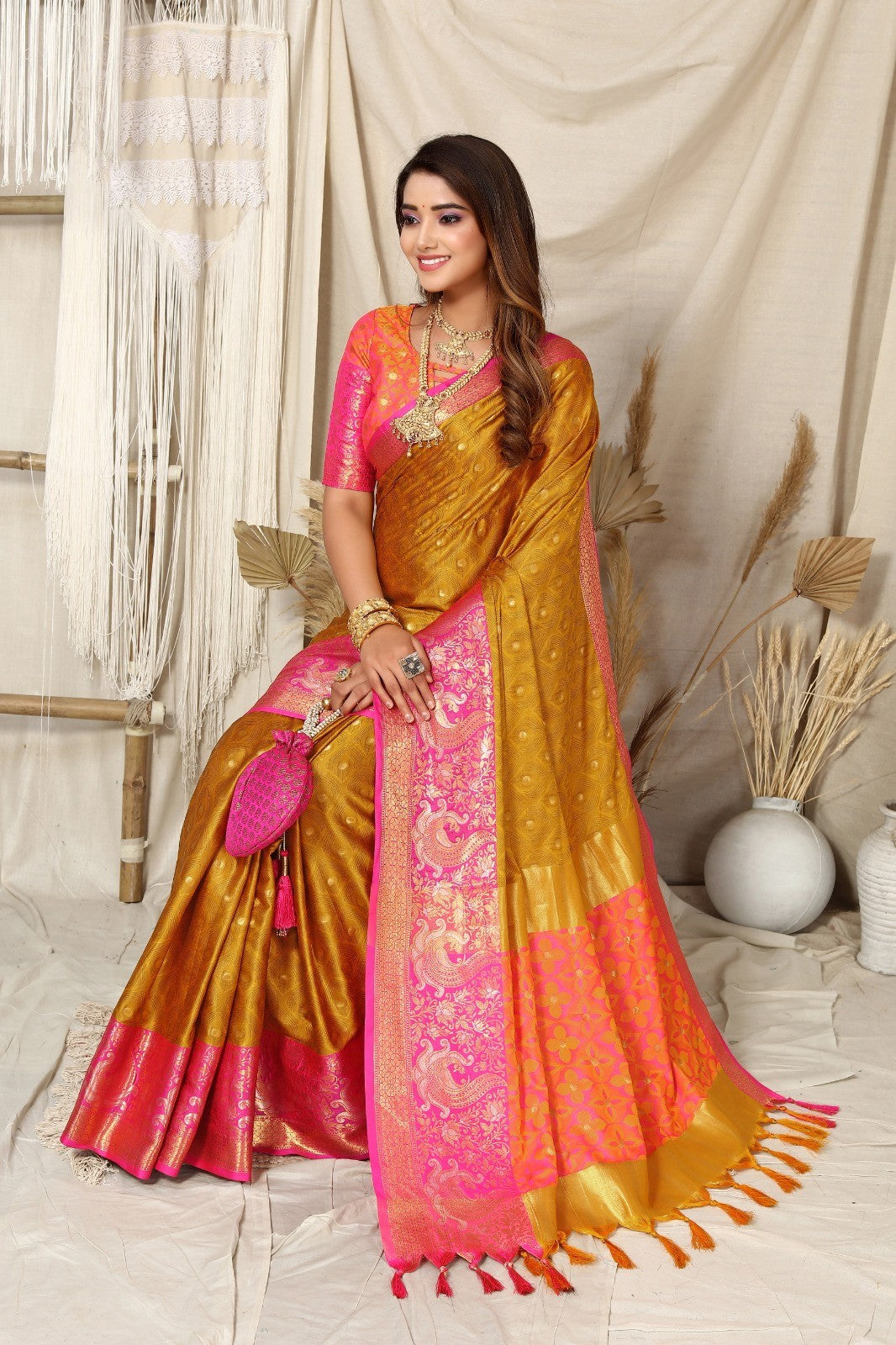 Mustard Colour Aura Rich Pallu designer silk Saree For Women's