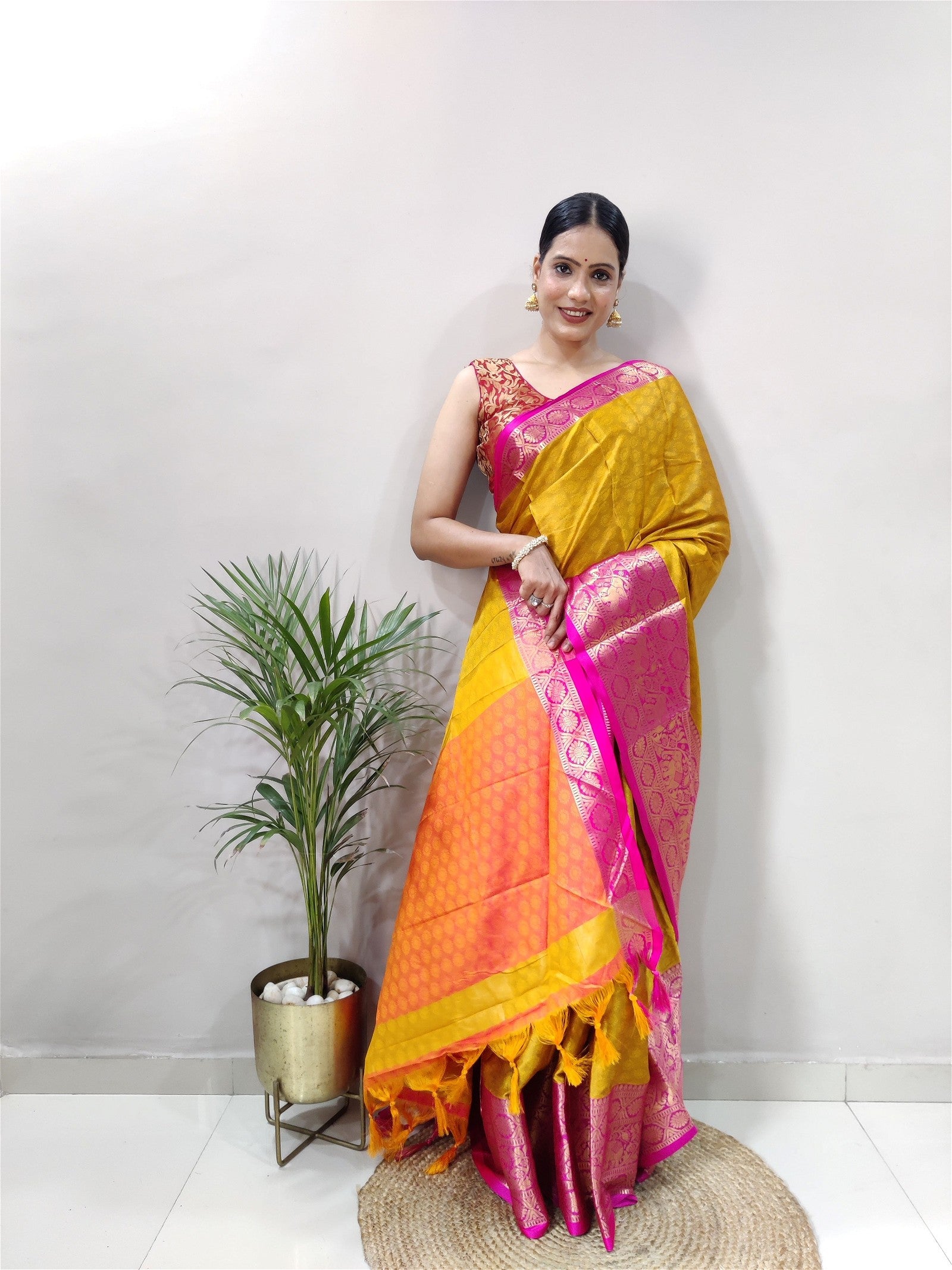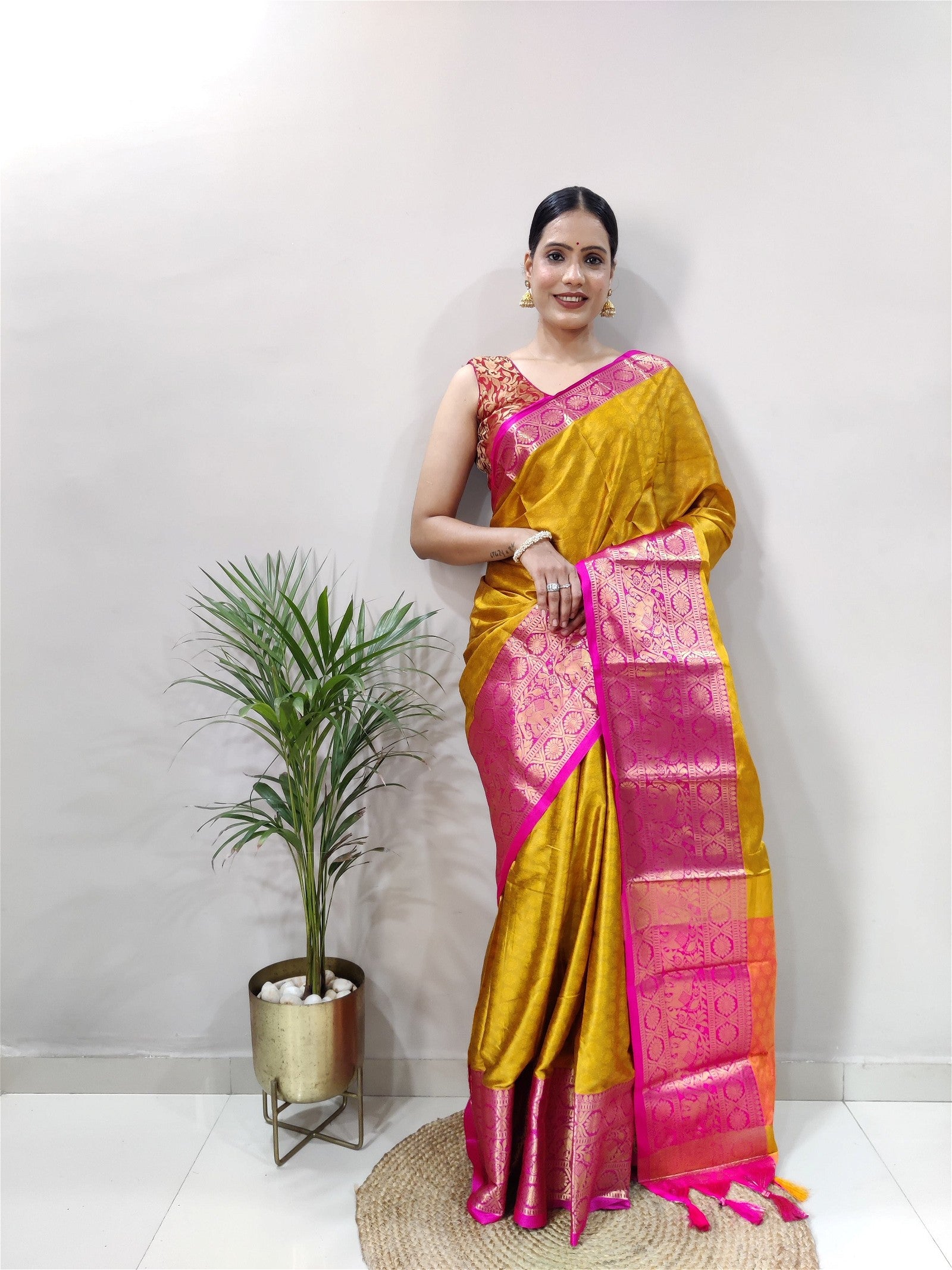 Mustard Colour Cotton Silk Saree For Women's