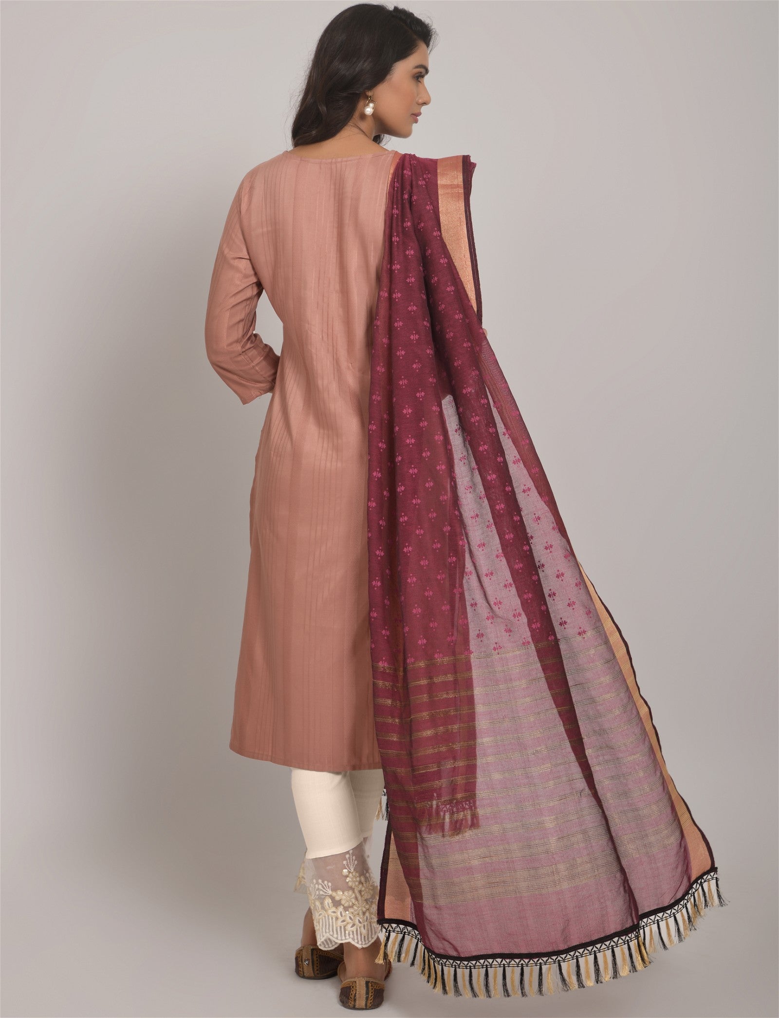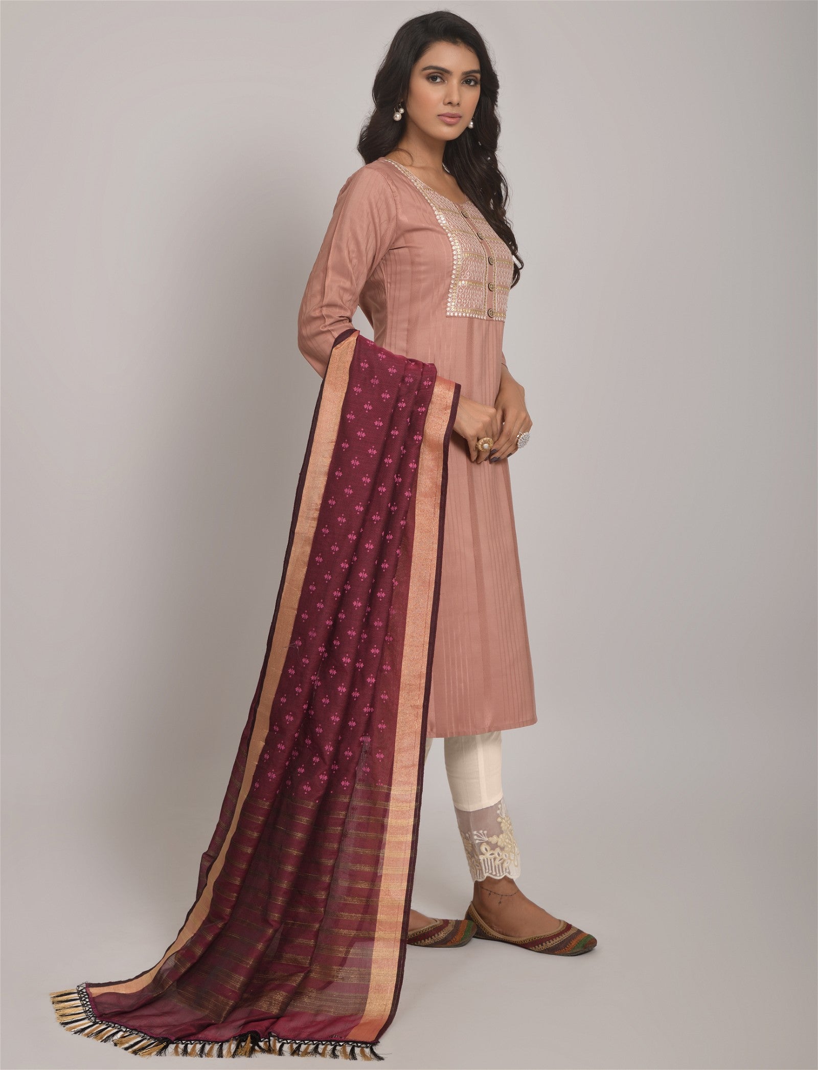 Peach Party Wear Embroidery Worked Kurta With Pant And Duppata Set