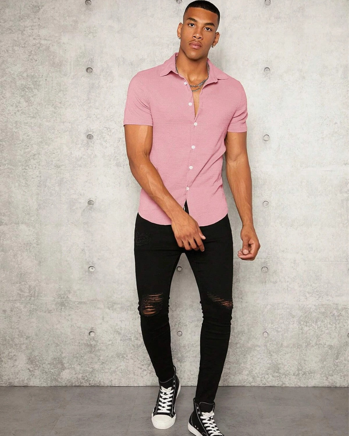Pink Colour Imported Casual Wear Short Sleeve Shirt For Men's