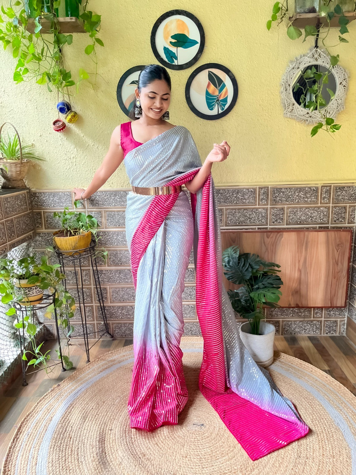 Pink Colour Premium Ready To Wear Saree