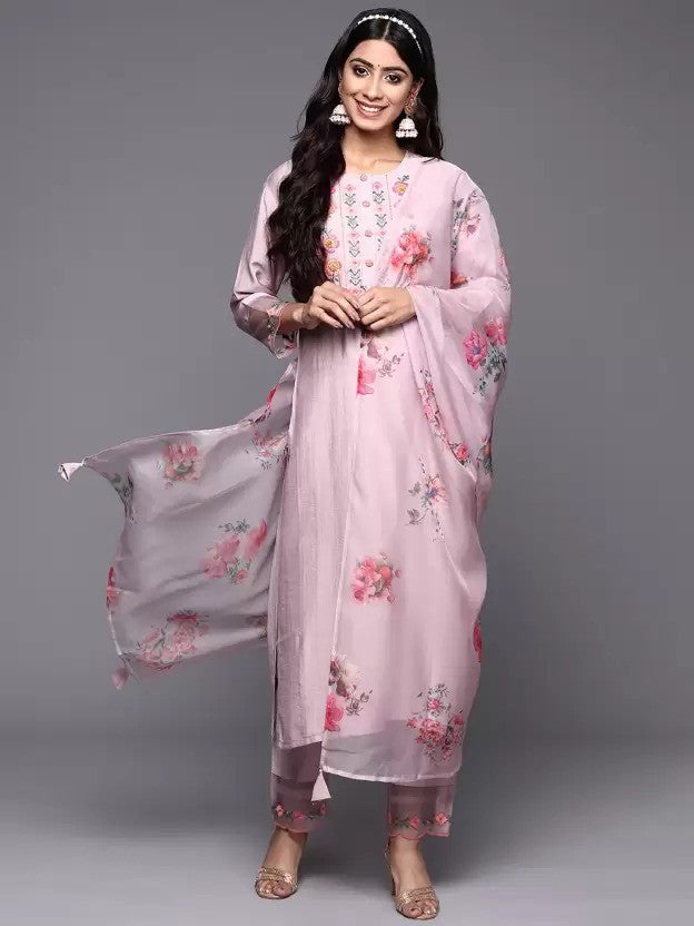 Pink Party Wear Embroidery Worked Kurta With Pant And Duppata Set