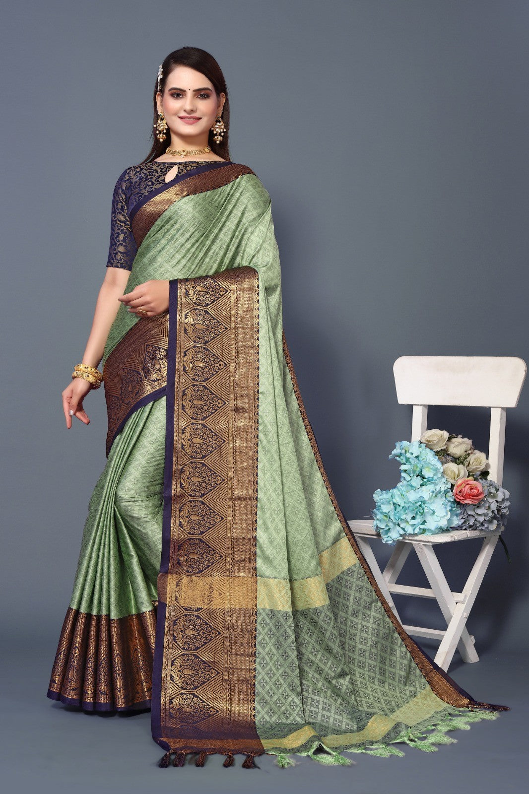 Pista Green Colour Cotton Silk Saree For Women's