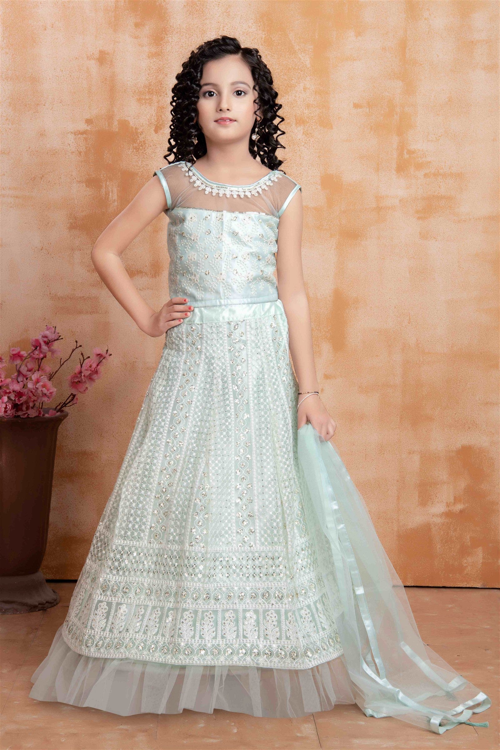 Pista Green Net Thread Embroidery And Sequins Work Lehenga Choli 612A