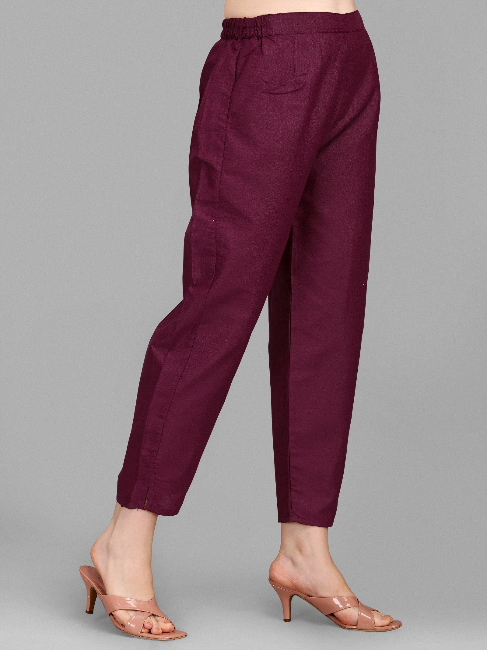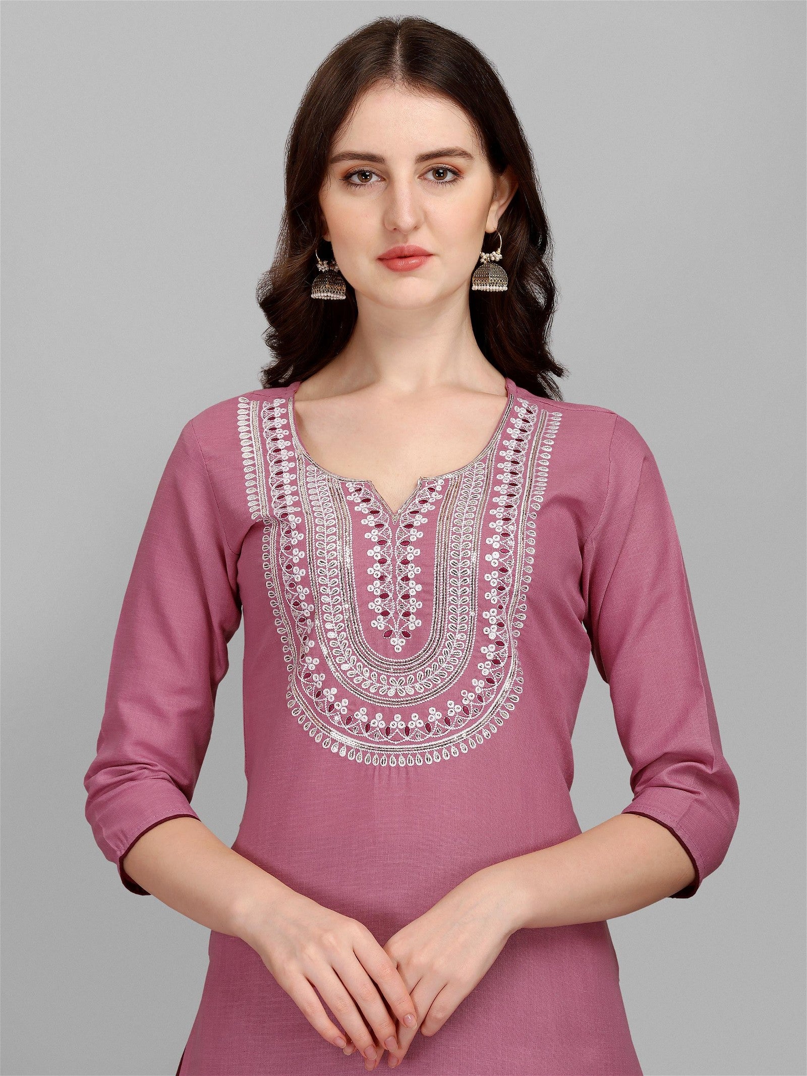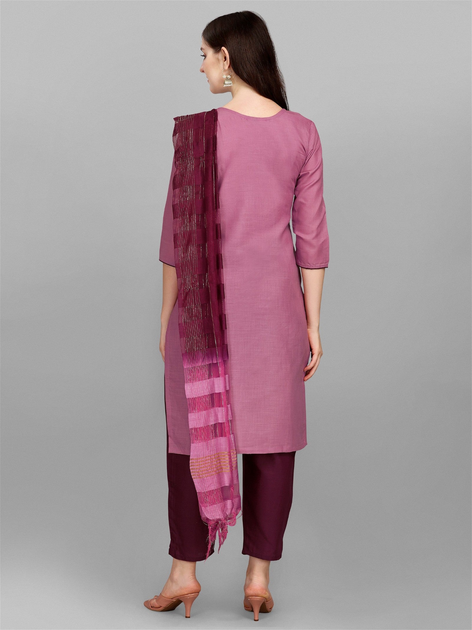 Purple Colour Slub Cotton Embroidery Kurta Pant Dupatta Set For Women's