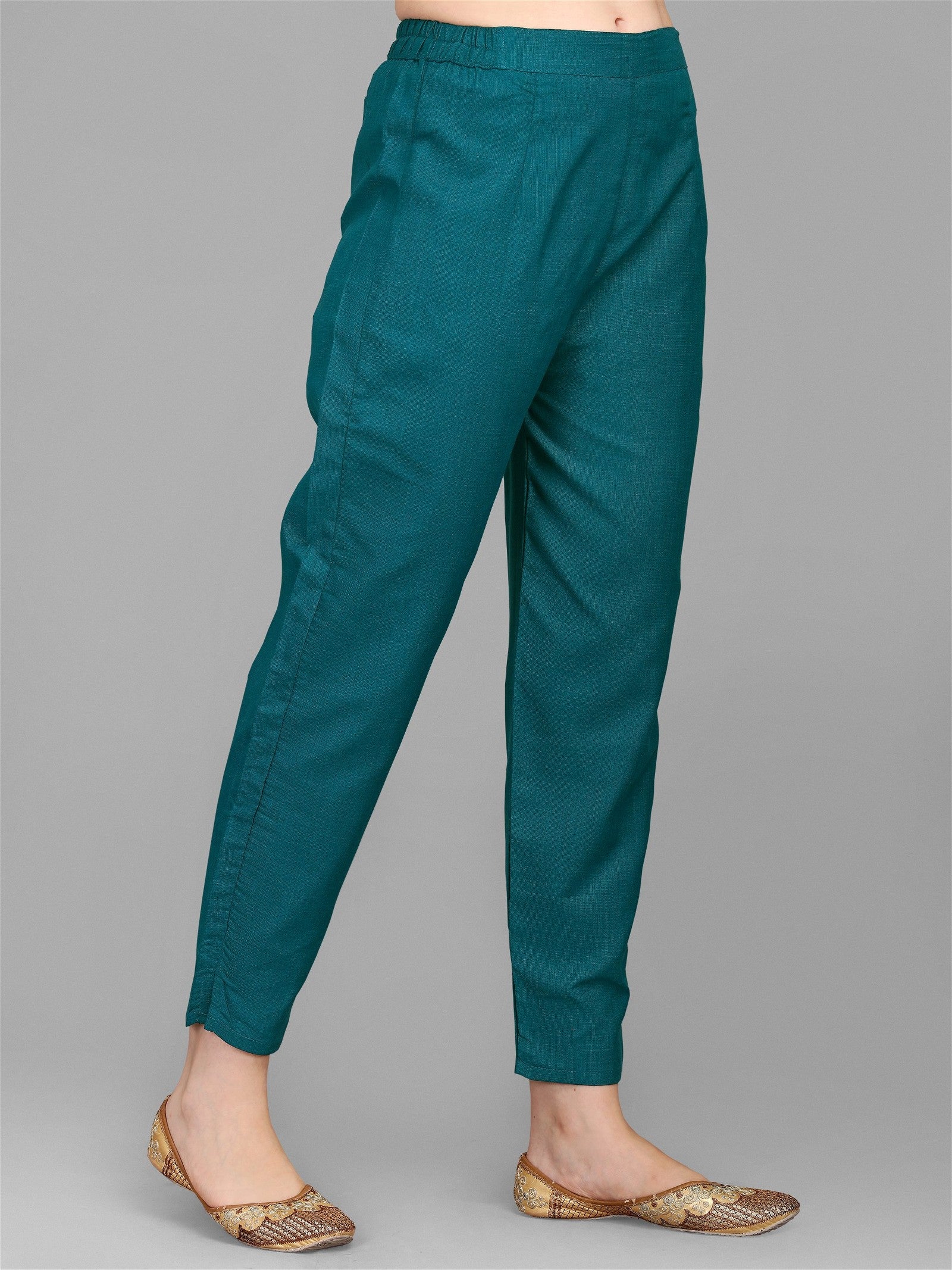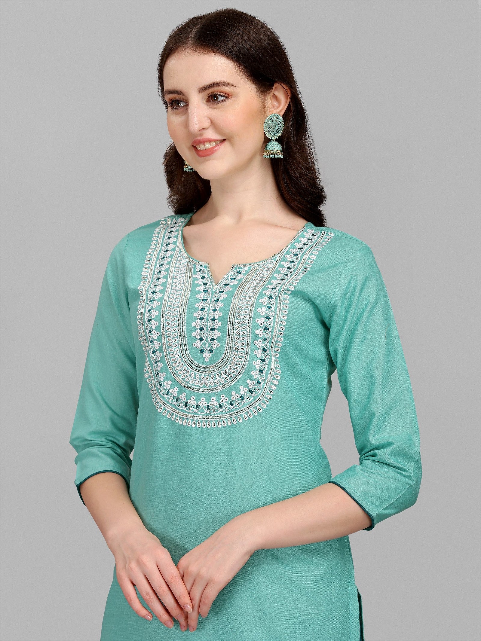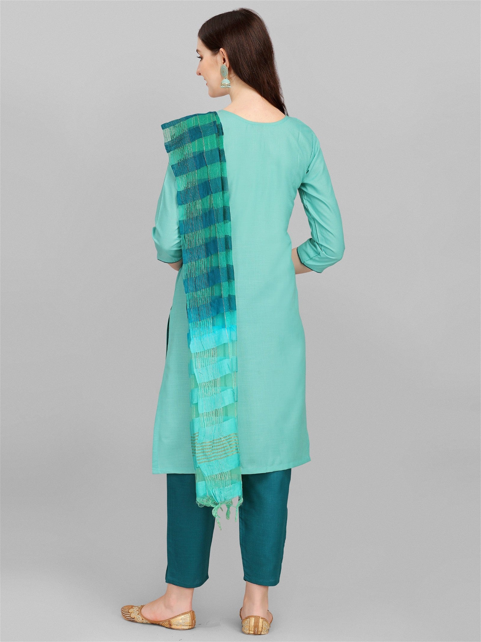 Rama Colour Slub Cotton Embroidery Kurta Pant Dupatta Set For Women's
