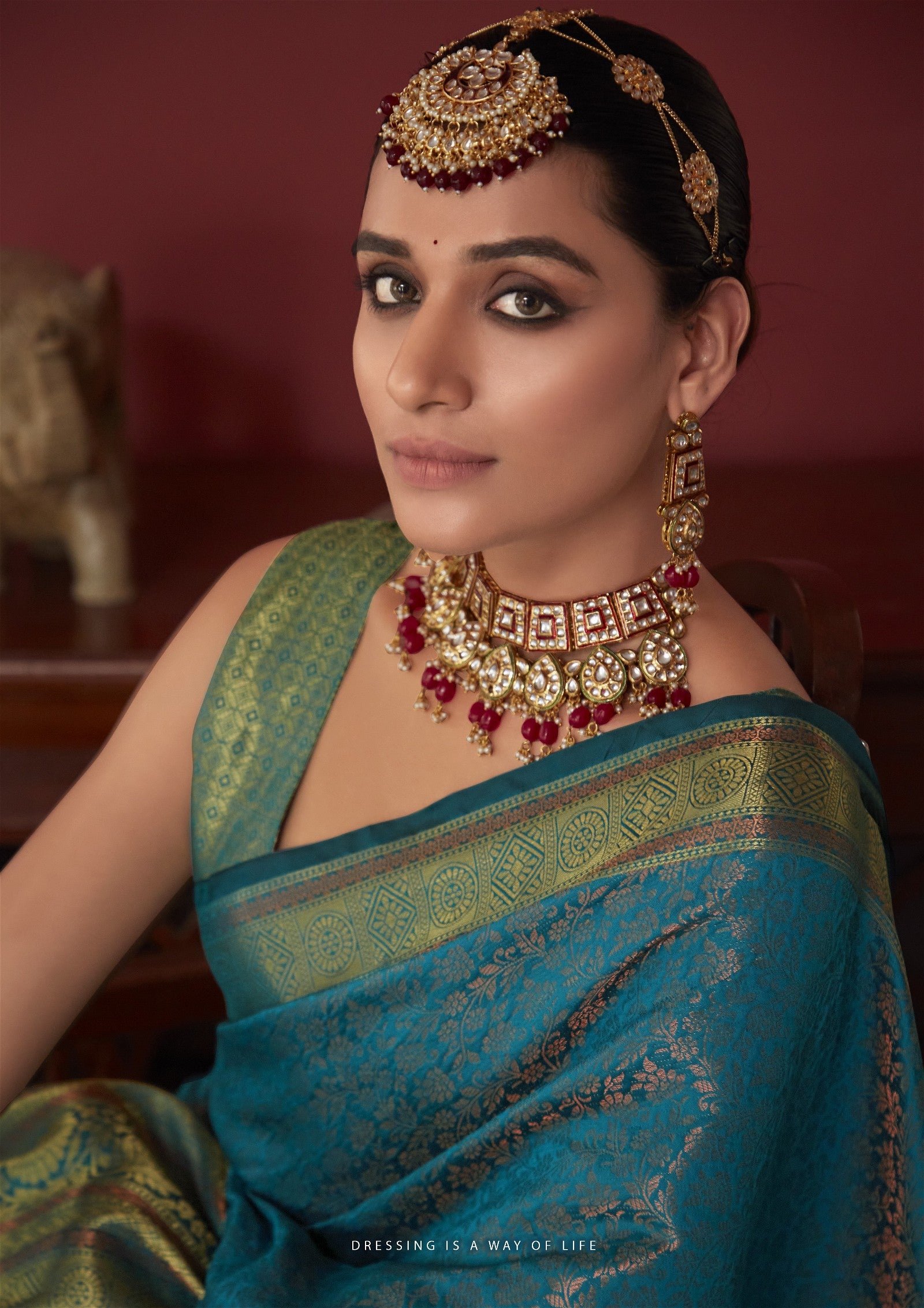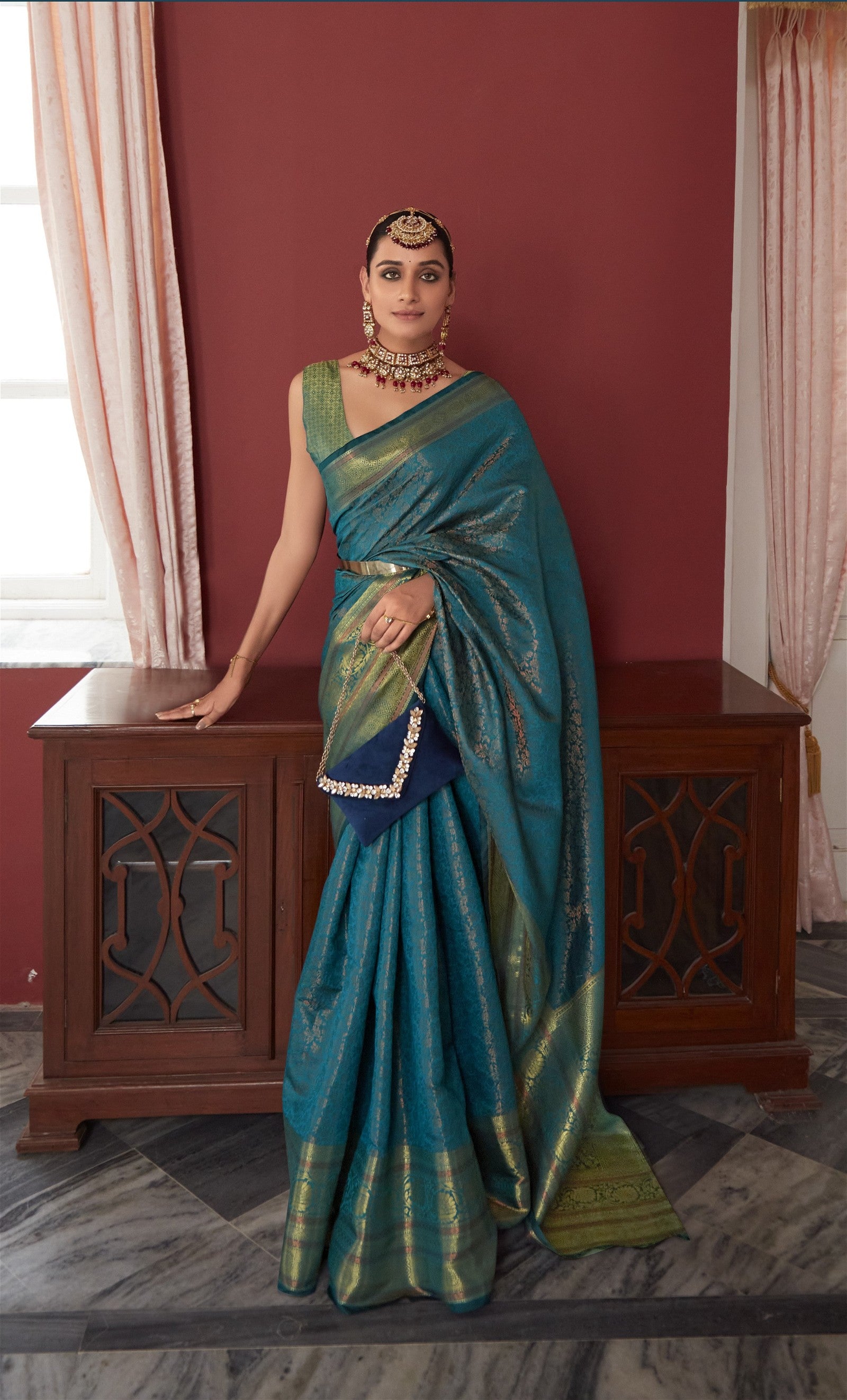 Rama Colour Soft Kanjivaram Silk With Copper Zari Weaving