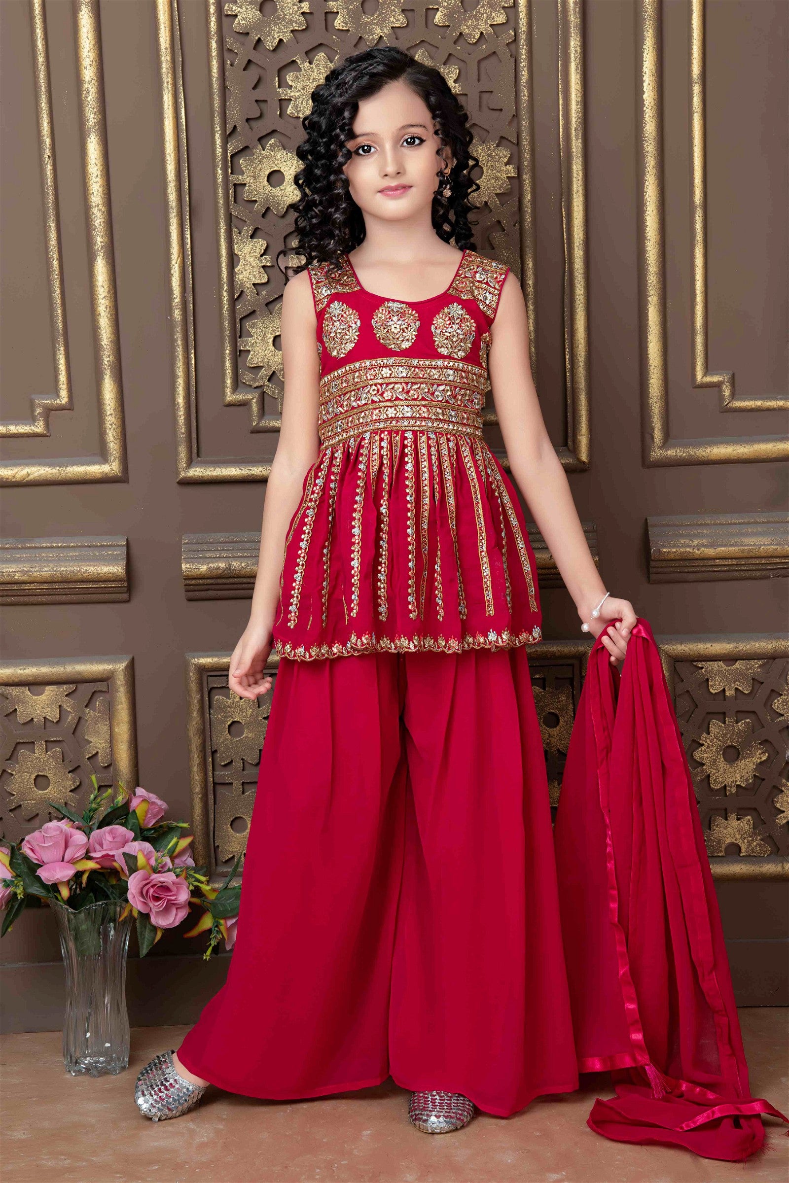 Red Georgette Kids Sarara Kameez 1004D