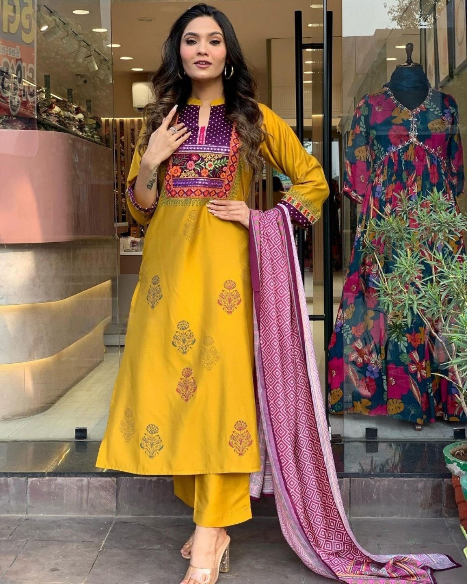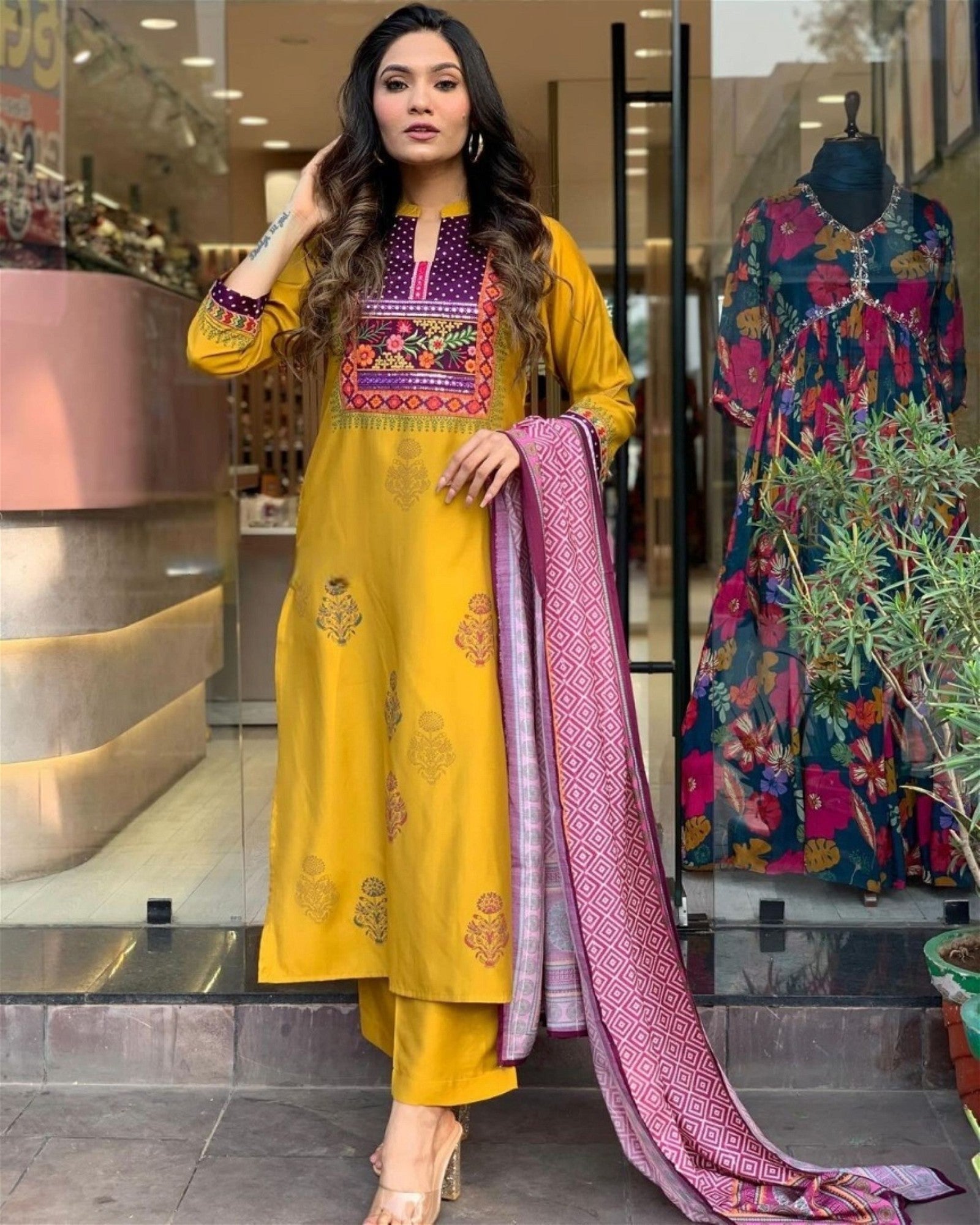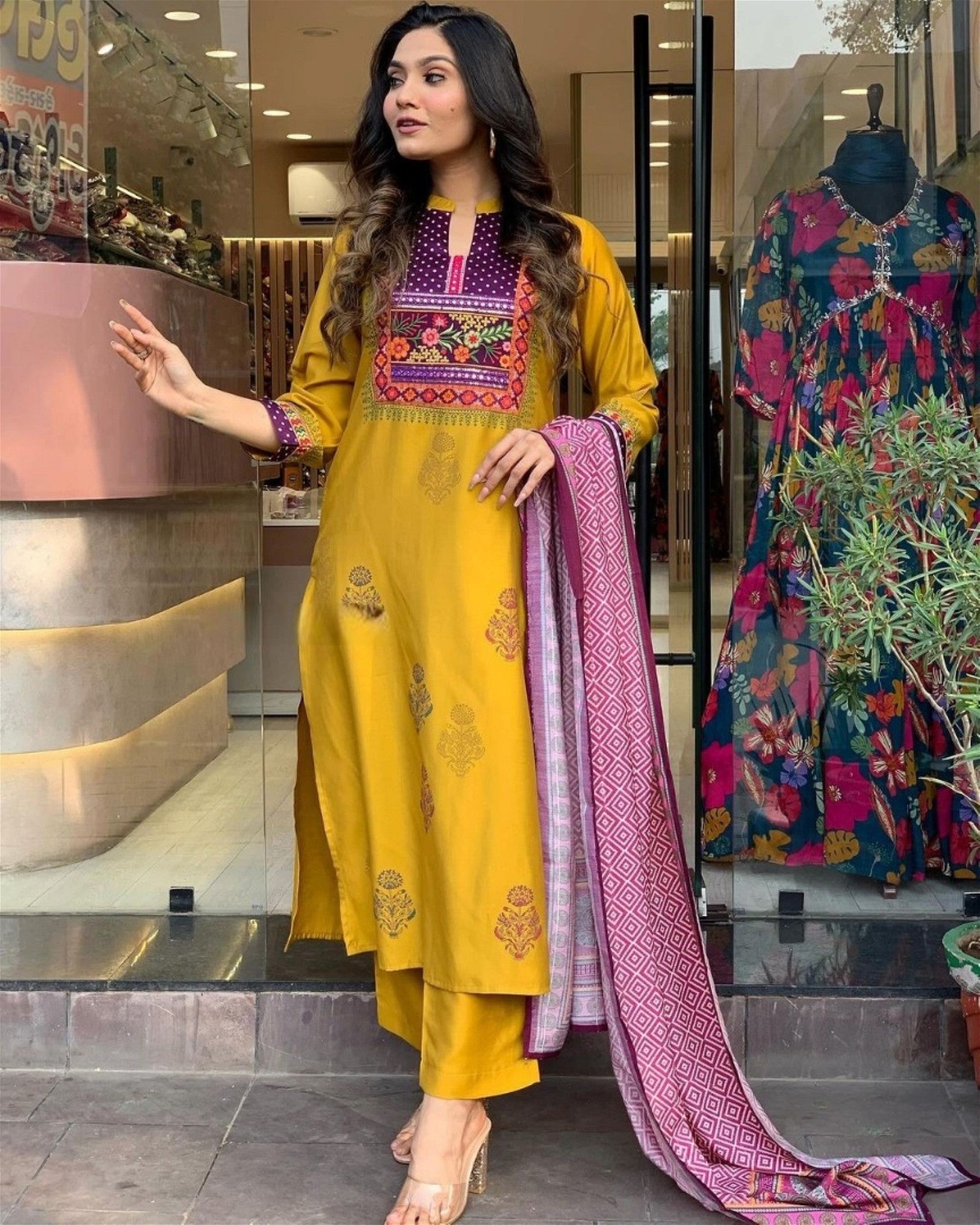 Women Embroidered Straight Kurta Set with Dupatta