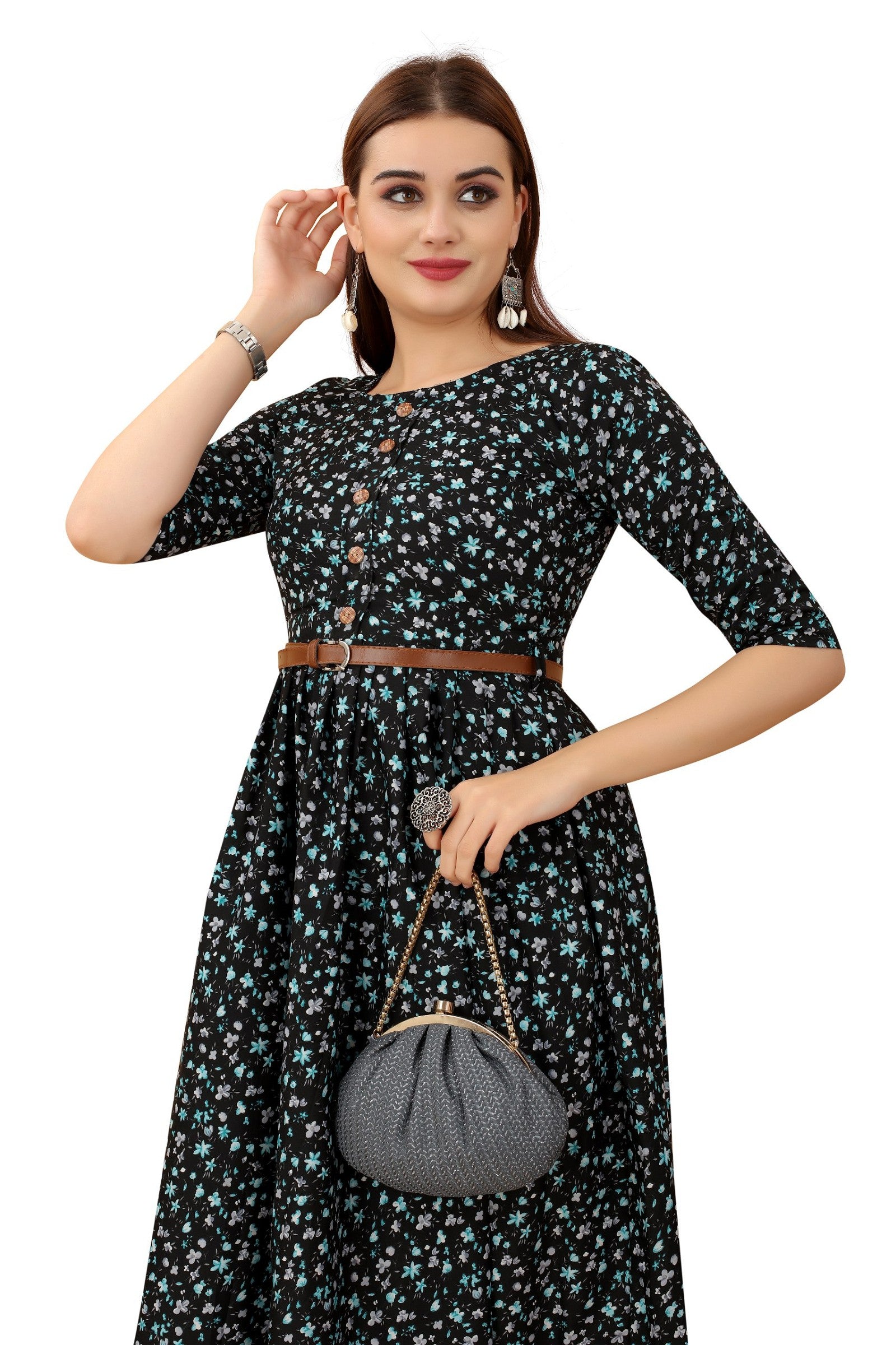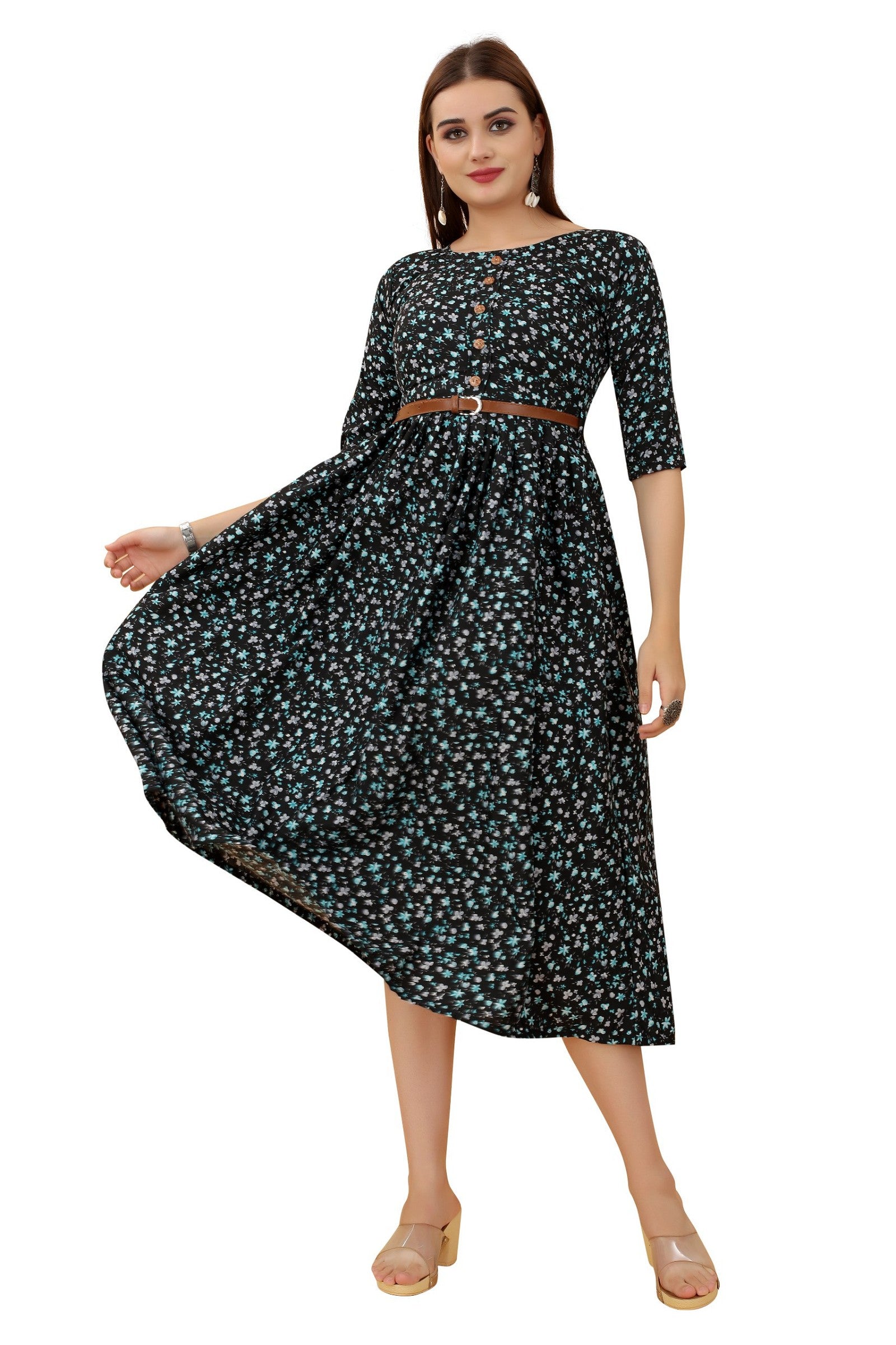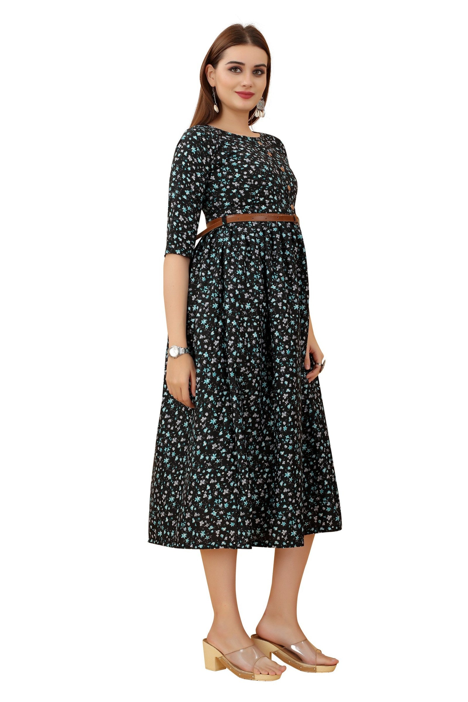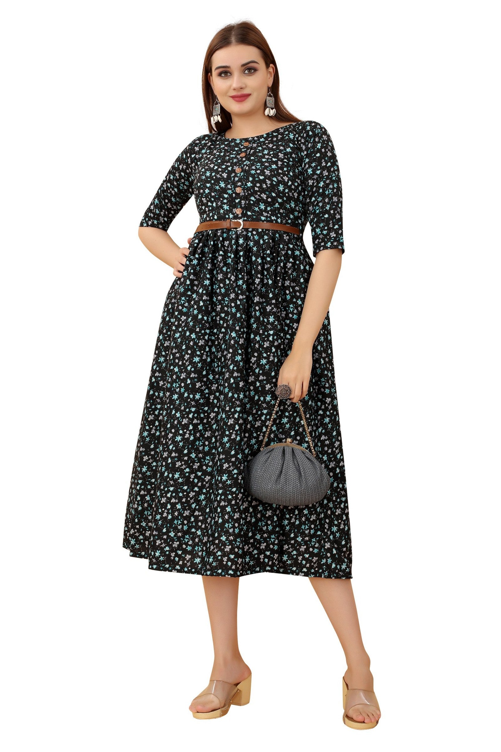 Women's Black Colour Crepe Printed Casual Wear Dress