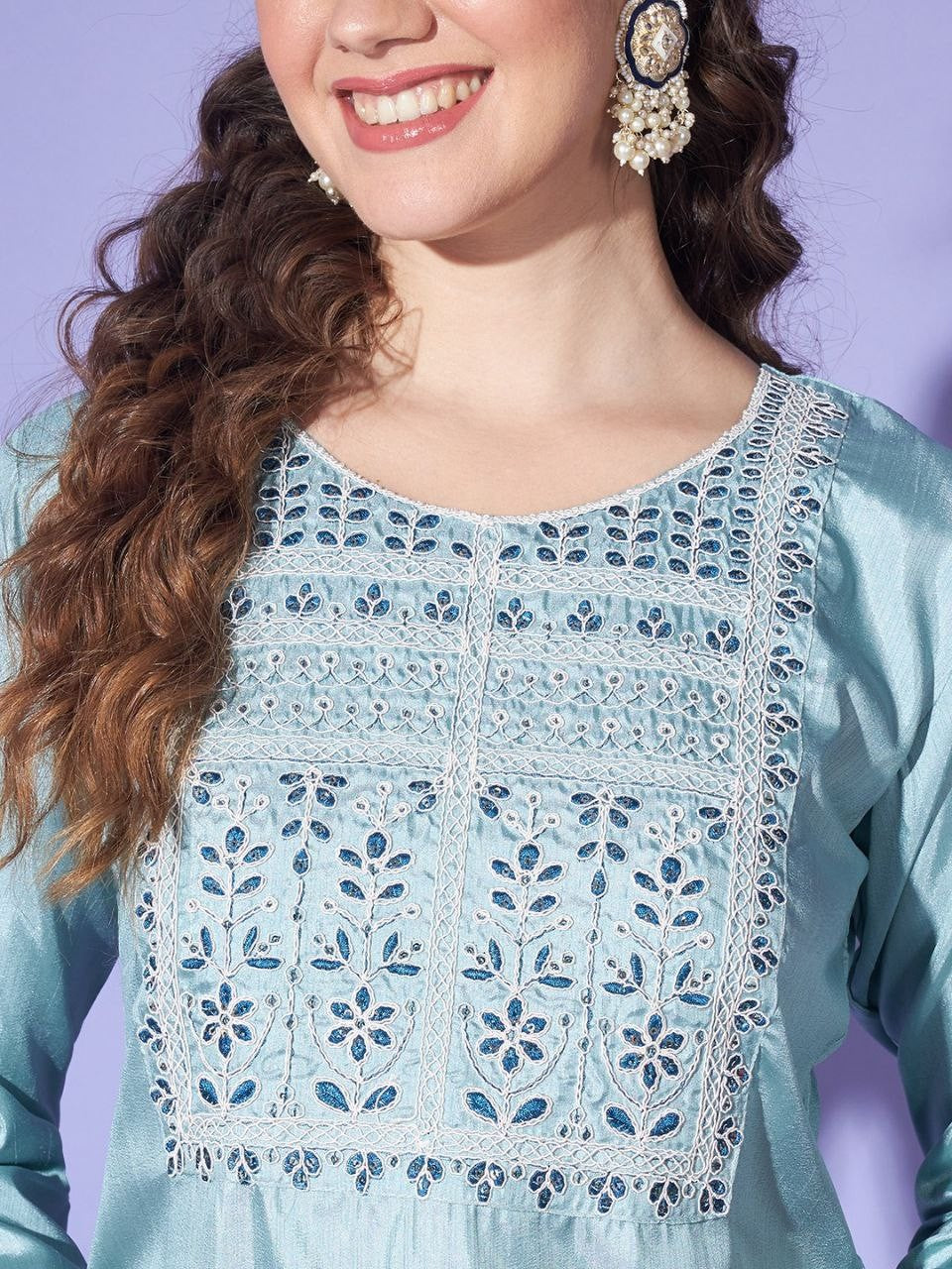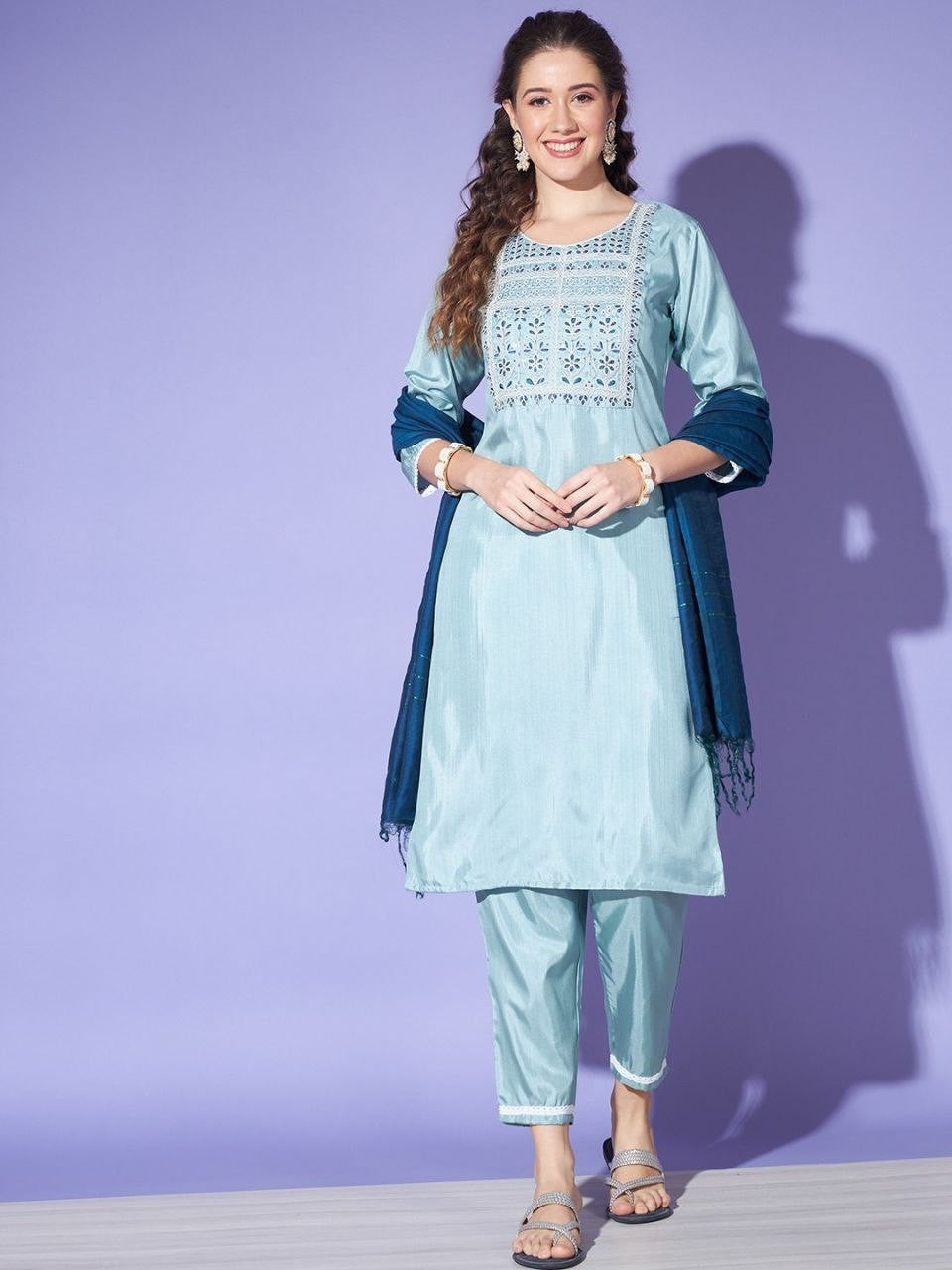 Women's Blue Colour South Silk Kurta Pant With Dupatta Set