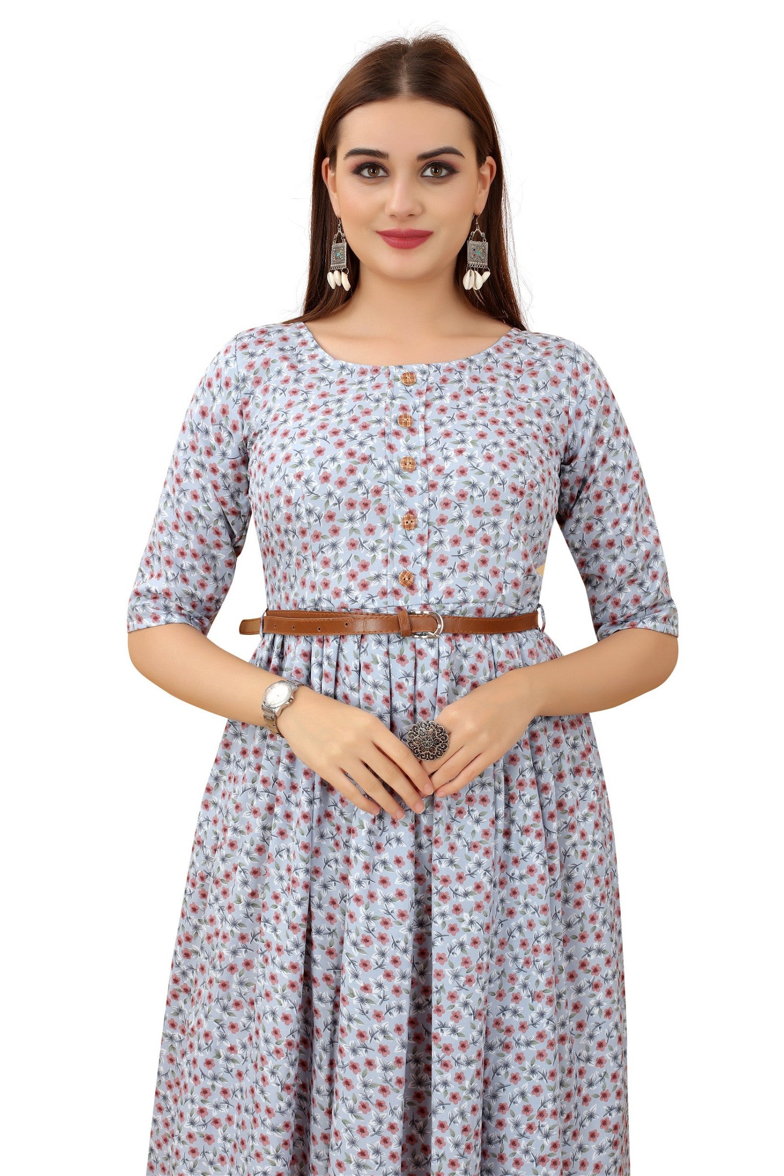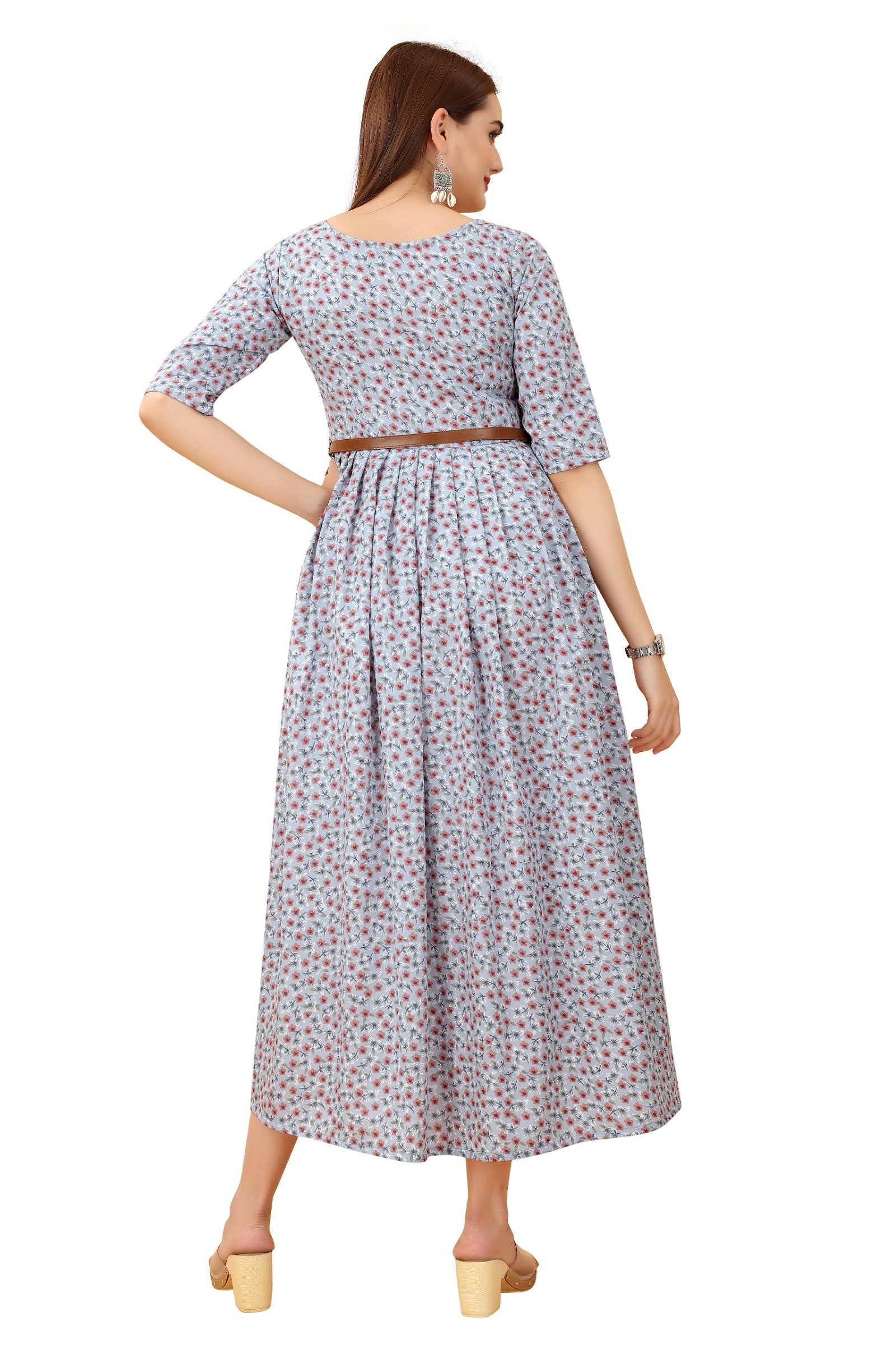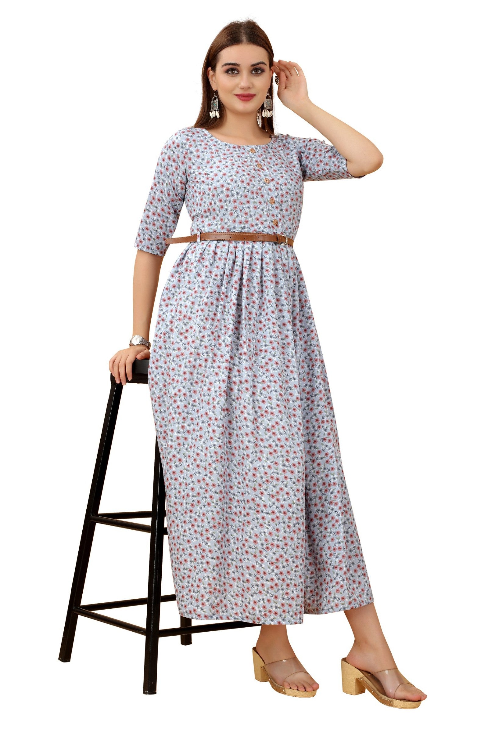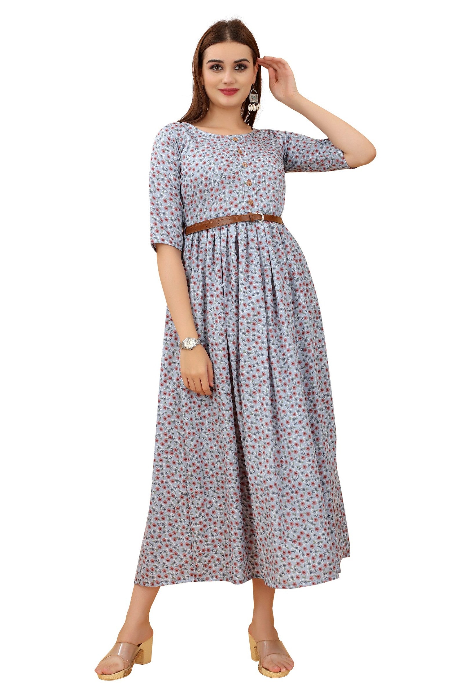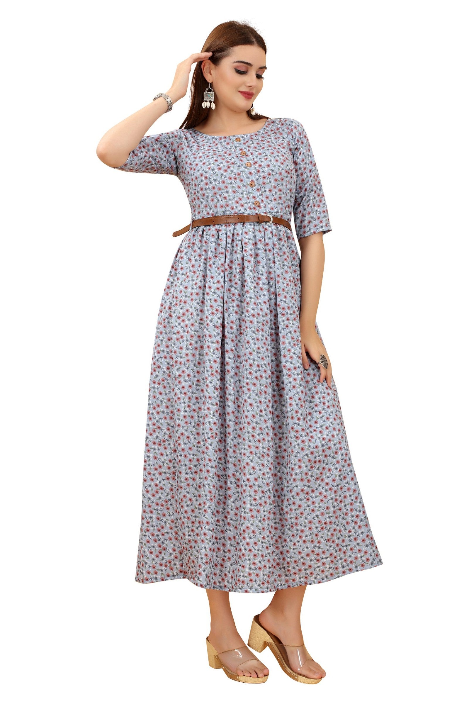 Women's Grey Colour Crepe Printed Casual Wear Dress