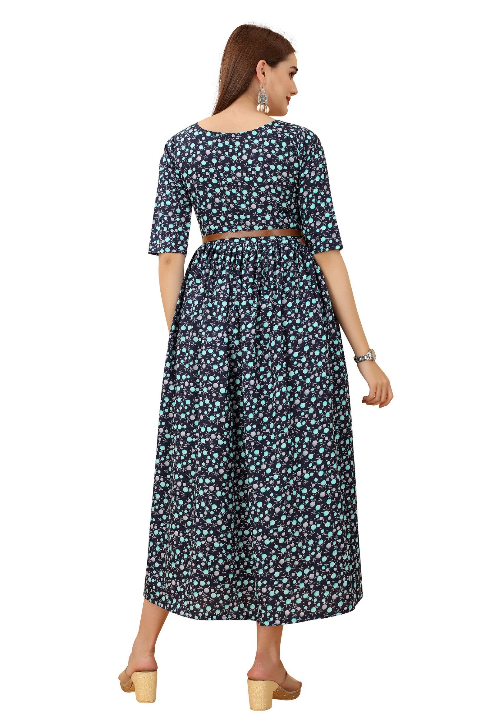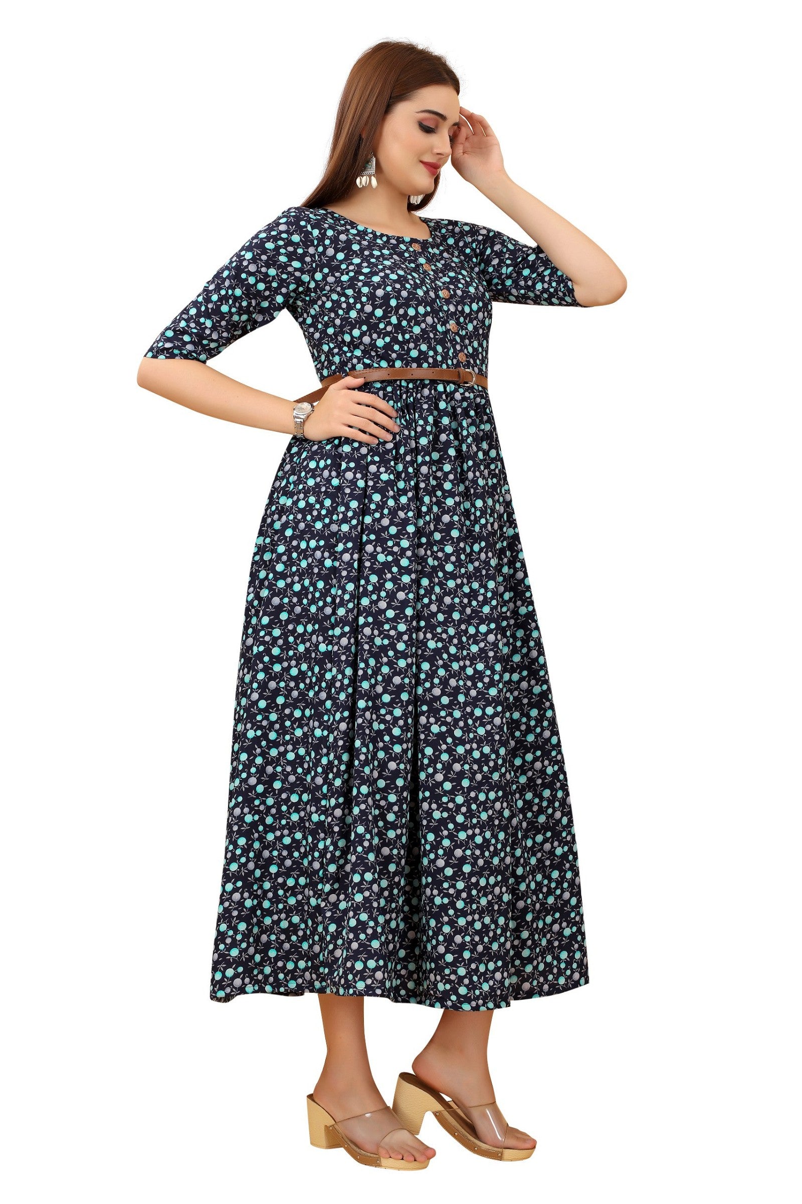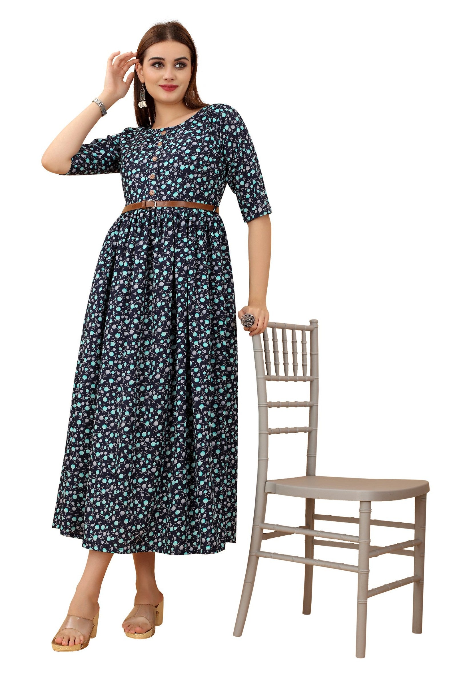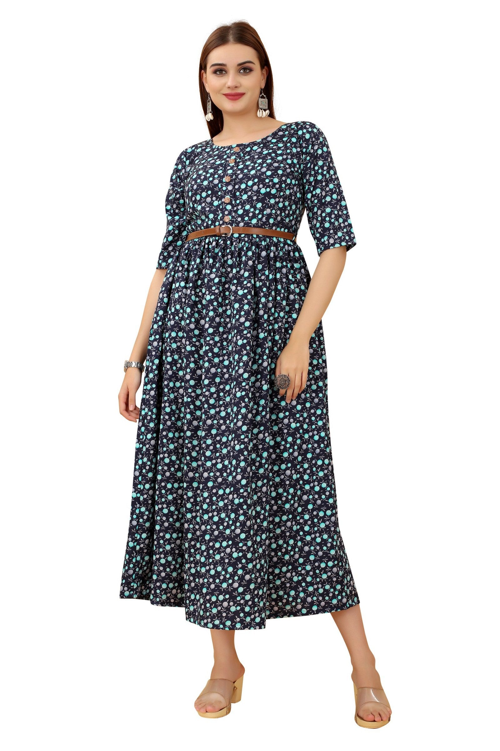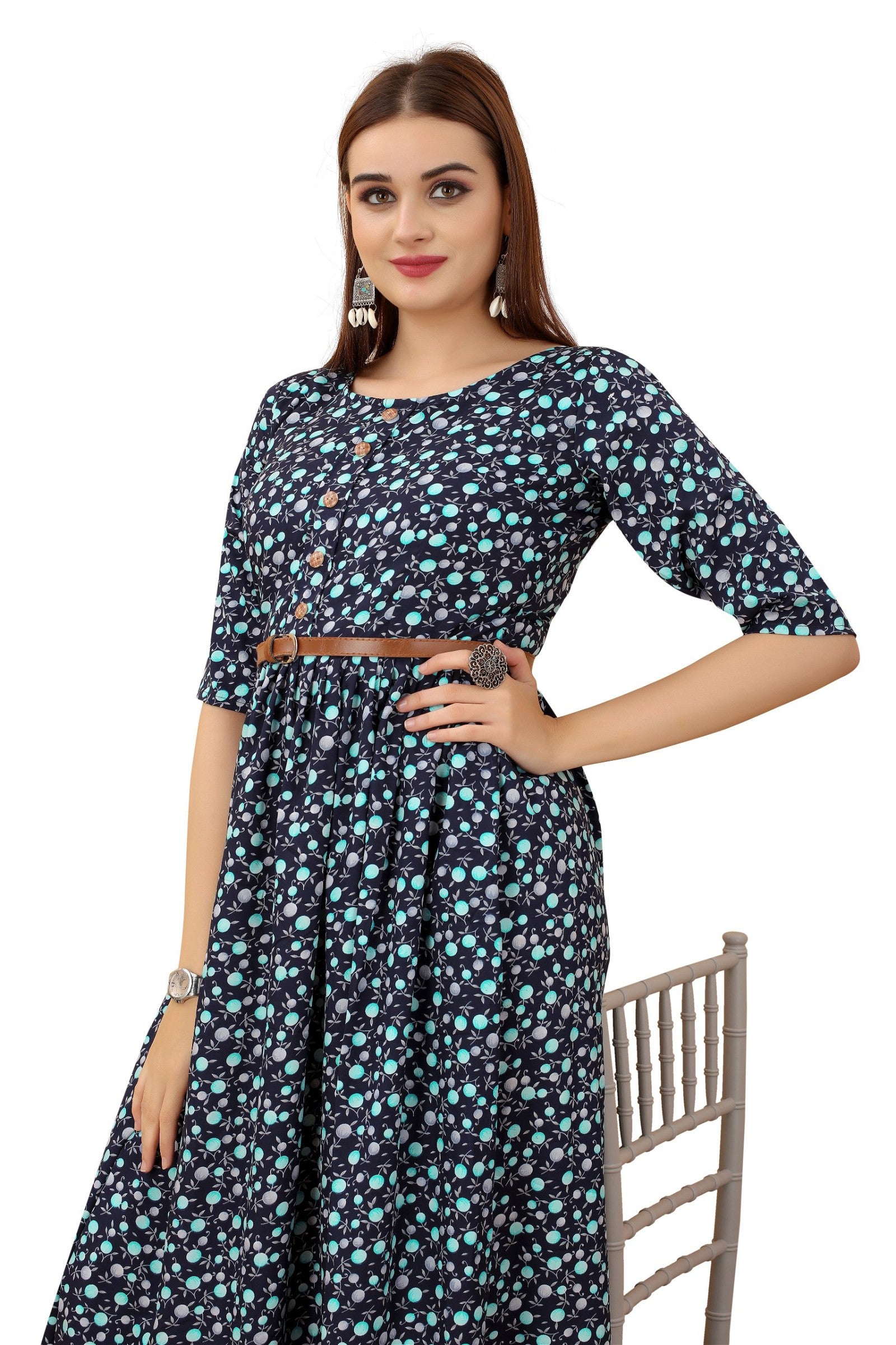 Women's Navy Blue Colour Crepe Printed Casual Wear Dress